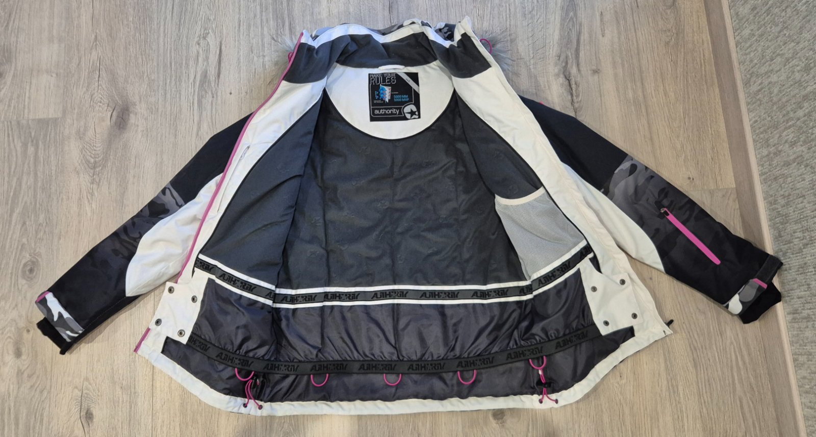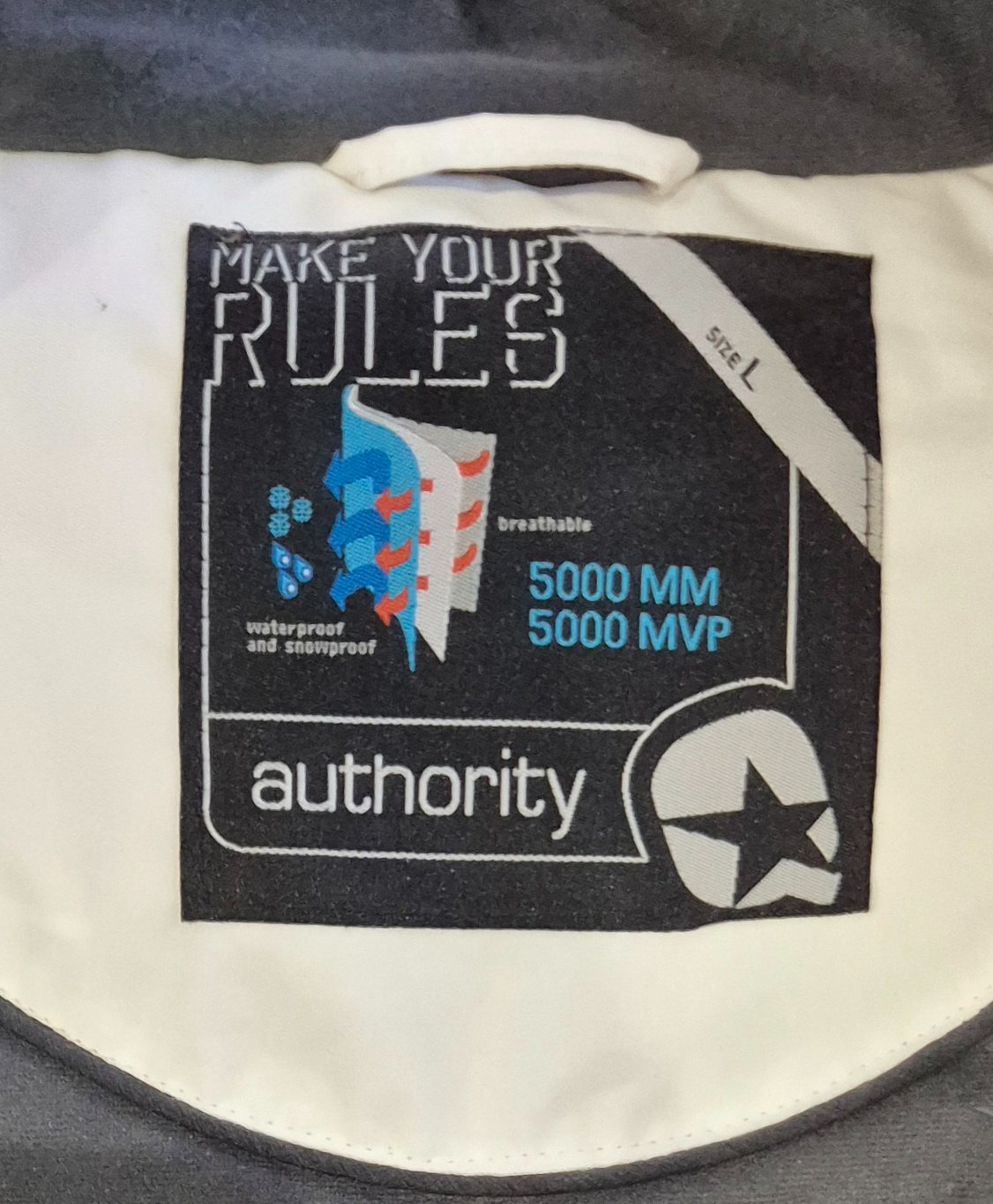 Predám kvalitnú bundu s lyžiarskym pásom, značky Authority, veľmi pekný nosený stav, farba pekná čierna, vady: sem-tam šuchnutý odrazový bezpečnostný pásik a dole na zošívanom mieste je trochu rozp...