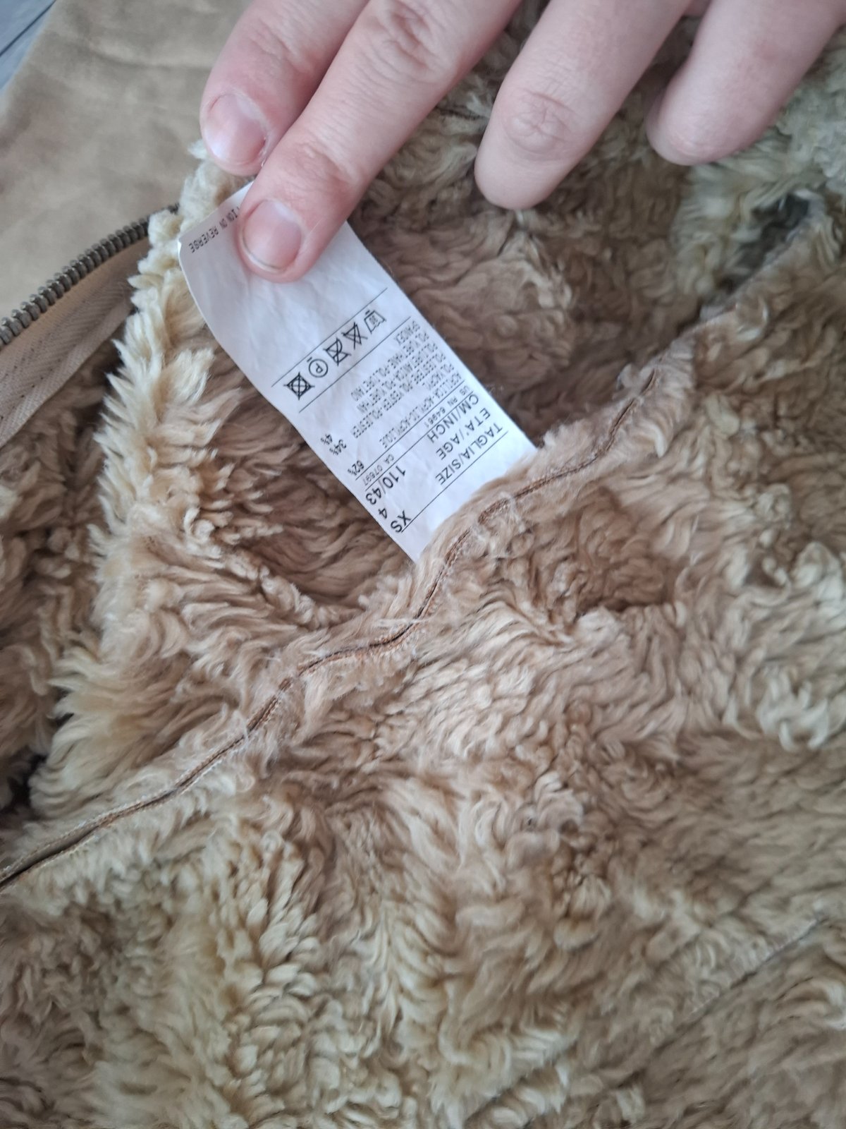 Pekny kožuštek bez poškodenia. Dlzka kozuska je 44cm, dlžka rukáva 37 ale dá sa podohnuť viď foto. šírka pod pazuškami 42. Je na zips.