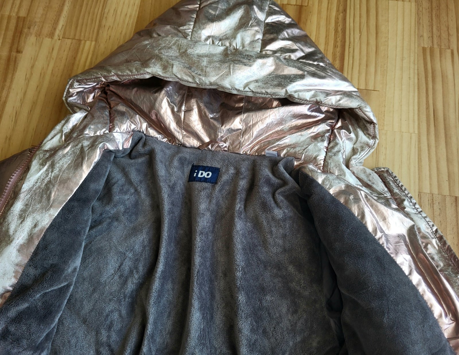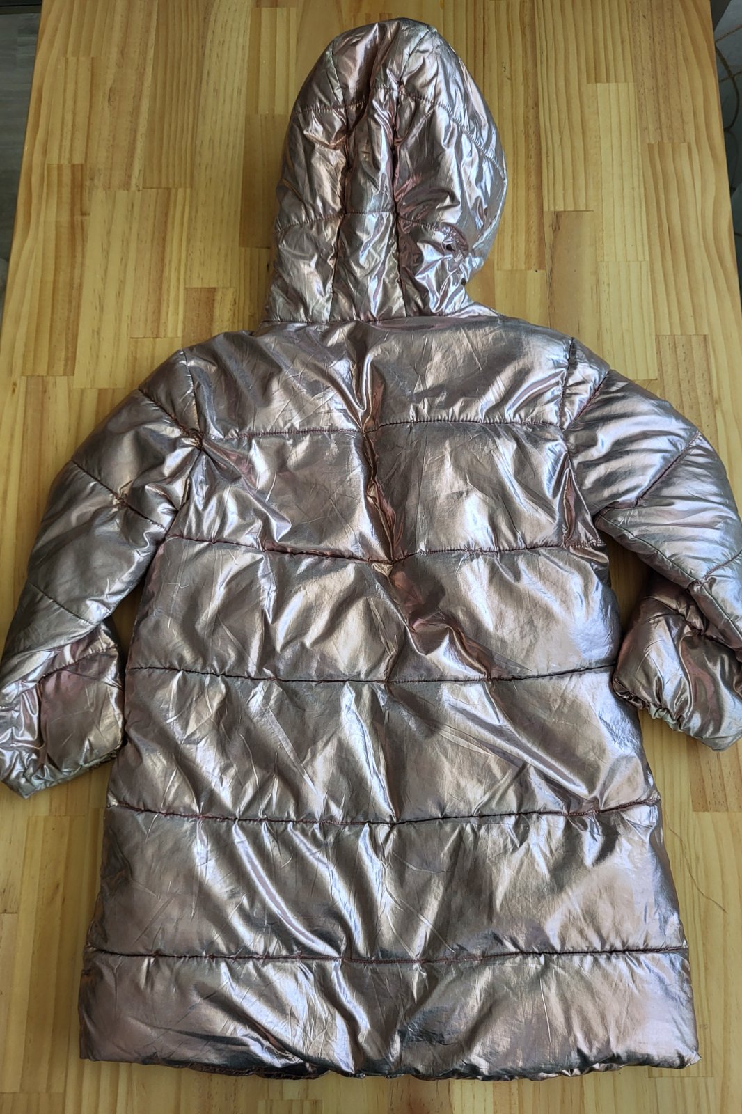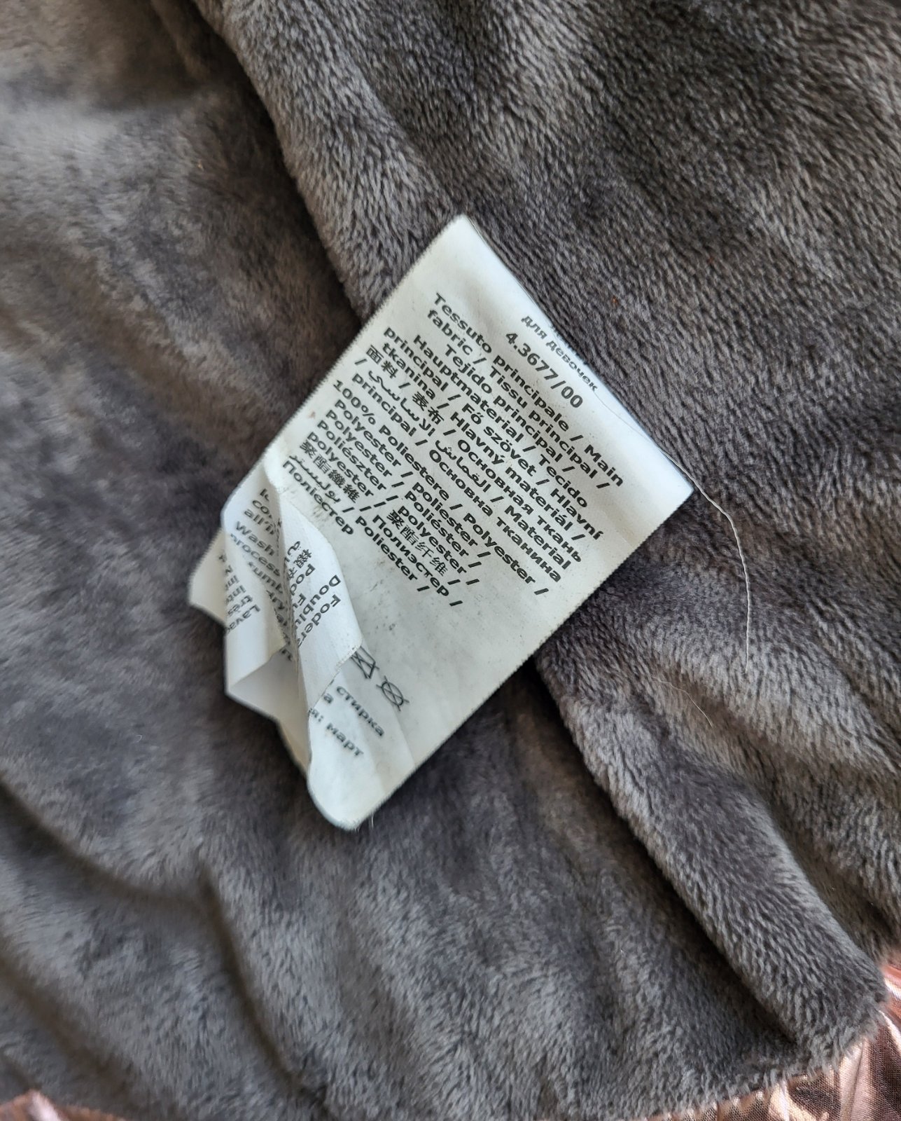 dobrý stav, lesklý vzhľad, bola rada nosená preto je na viacerých miestach ošúchaná(kapucňa, konce rukávov, vnútorný lem pod zipsom, miestami na tele bundy, bežce), vhodná skôr len na domáce využitie, predĺžená, bočné vačky na zips, pošlem buď poštou alebo packetou