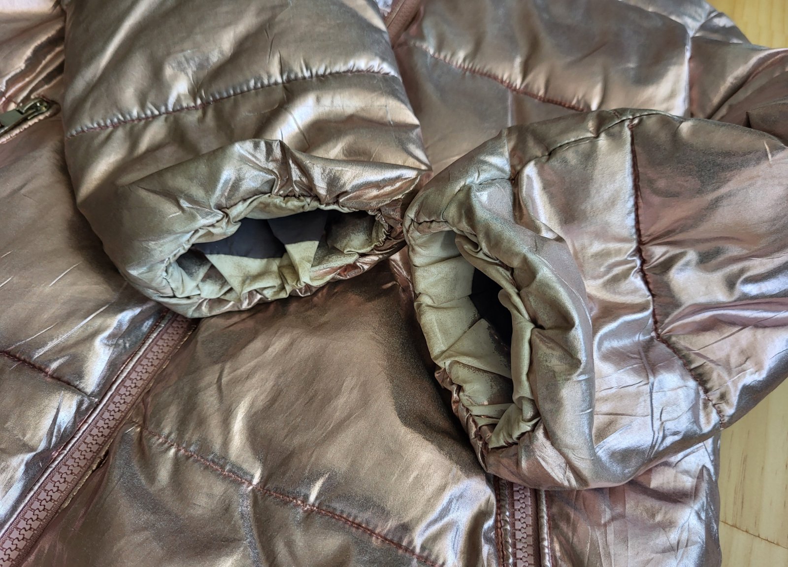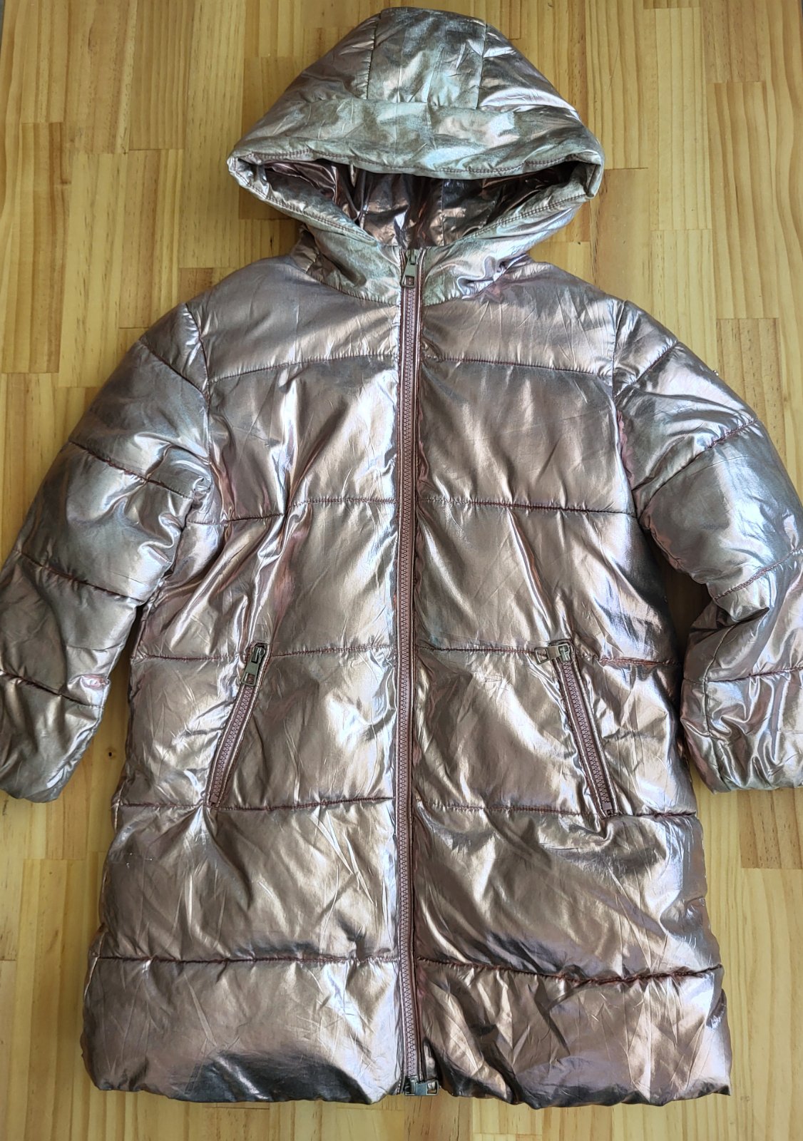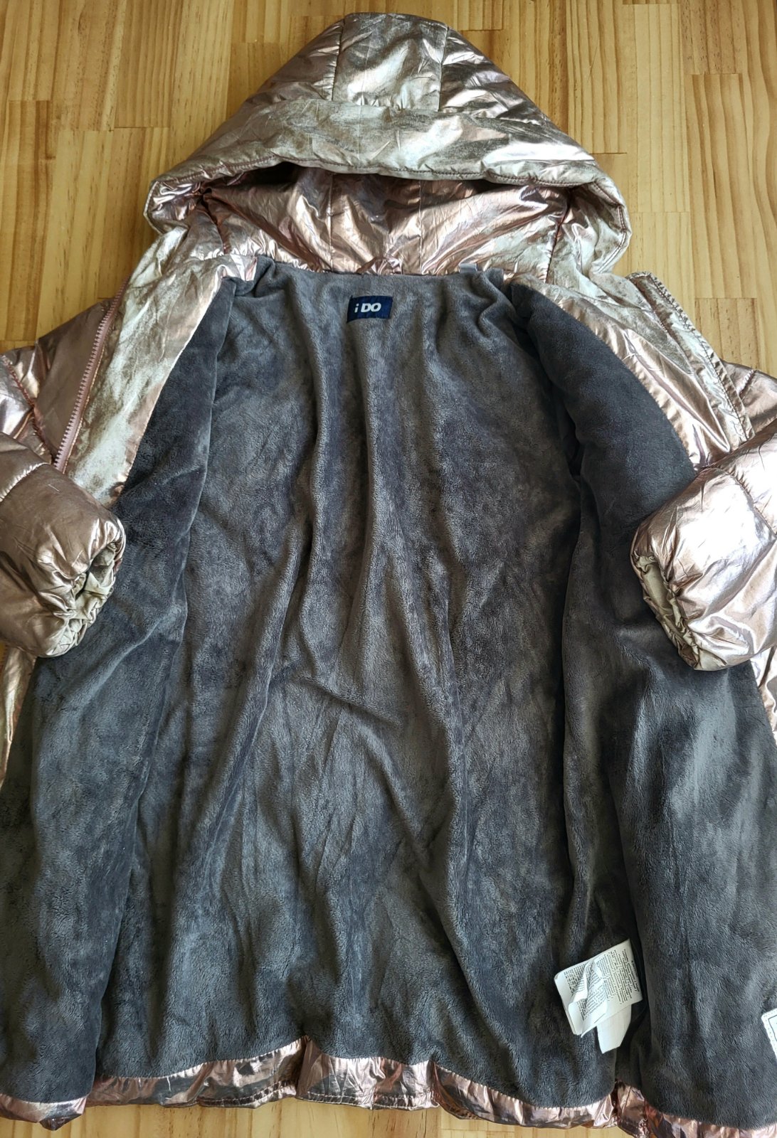dobrý stav, lesklý vzhľad, bola rada nosená preto je na viacerých miestach ošúchaná(kapucňa, konce rukávov, vnútorný lem pod zipsom, miestami na tele bundy, bežce), vhodná skôr len na domáce využitie, predĺžená, bočné vačky na zips, pošlem buď poštou alebo packetou