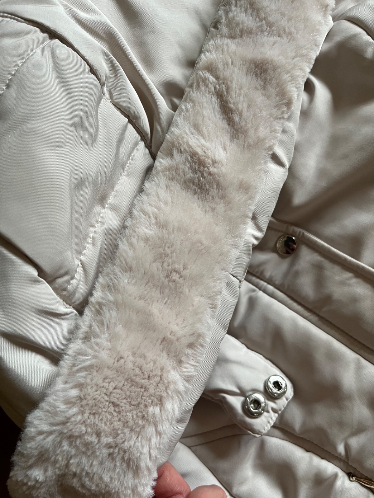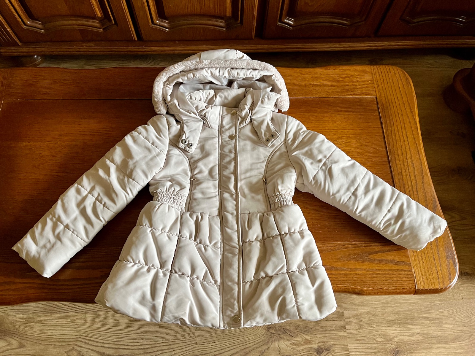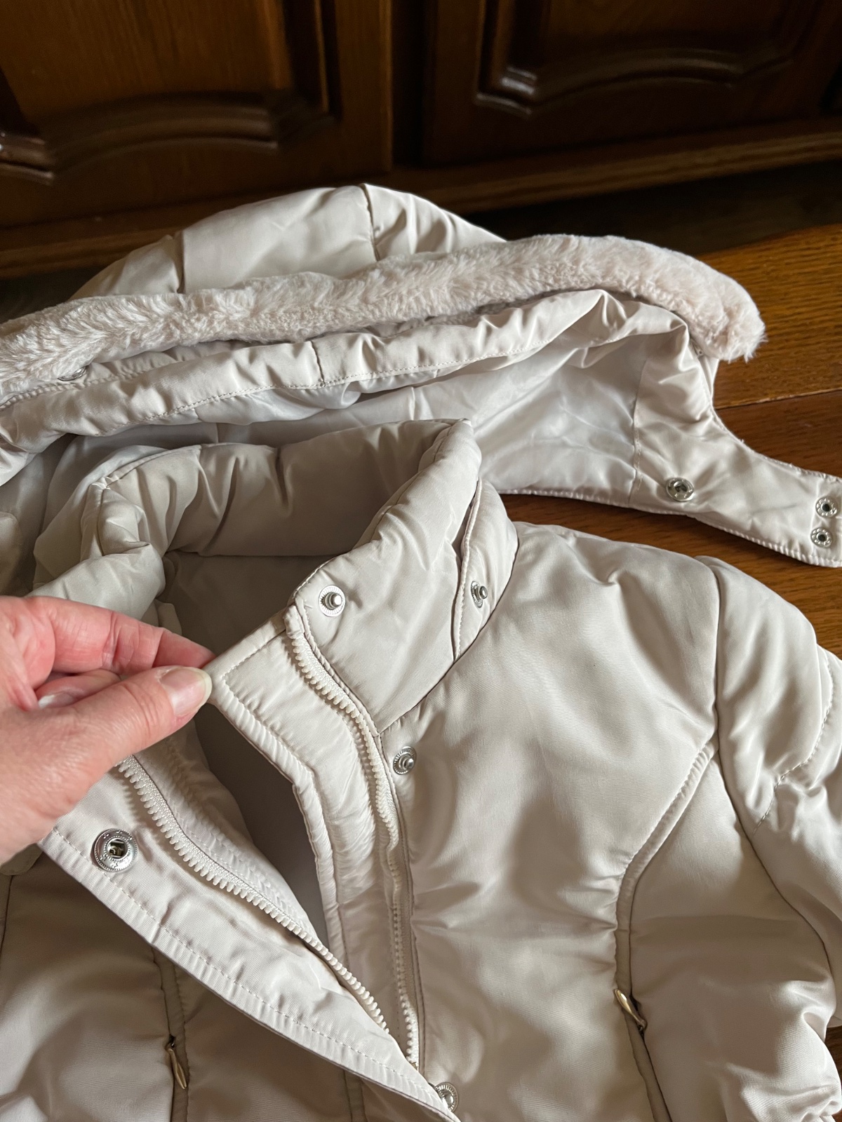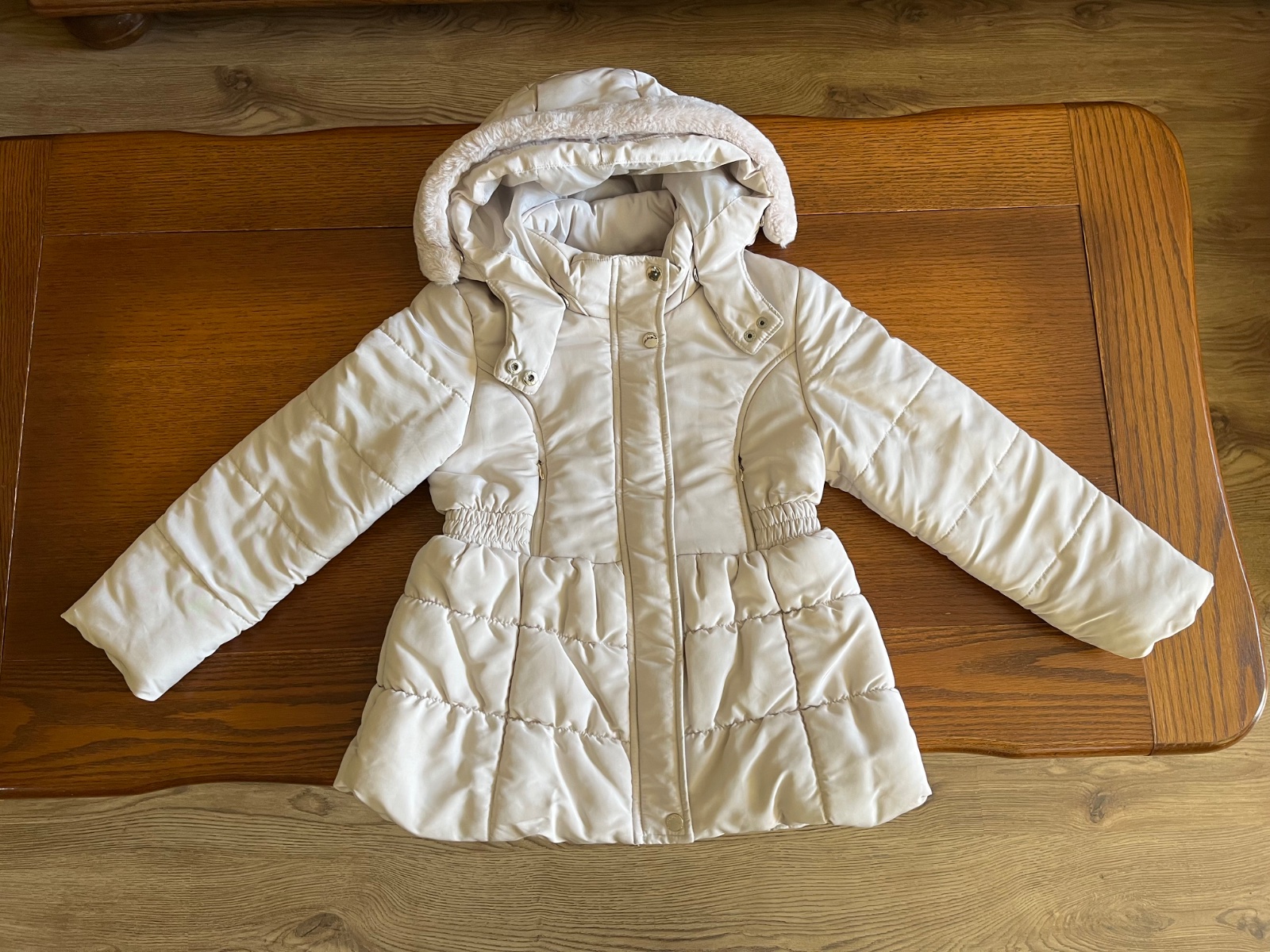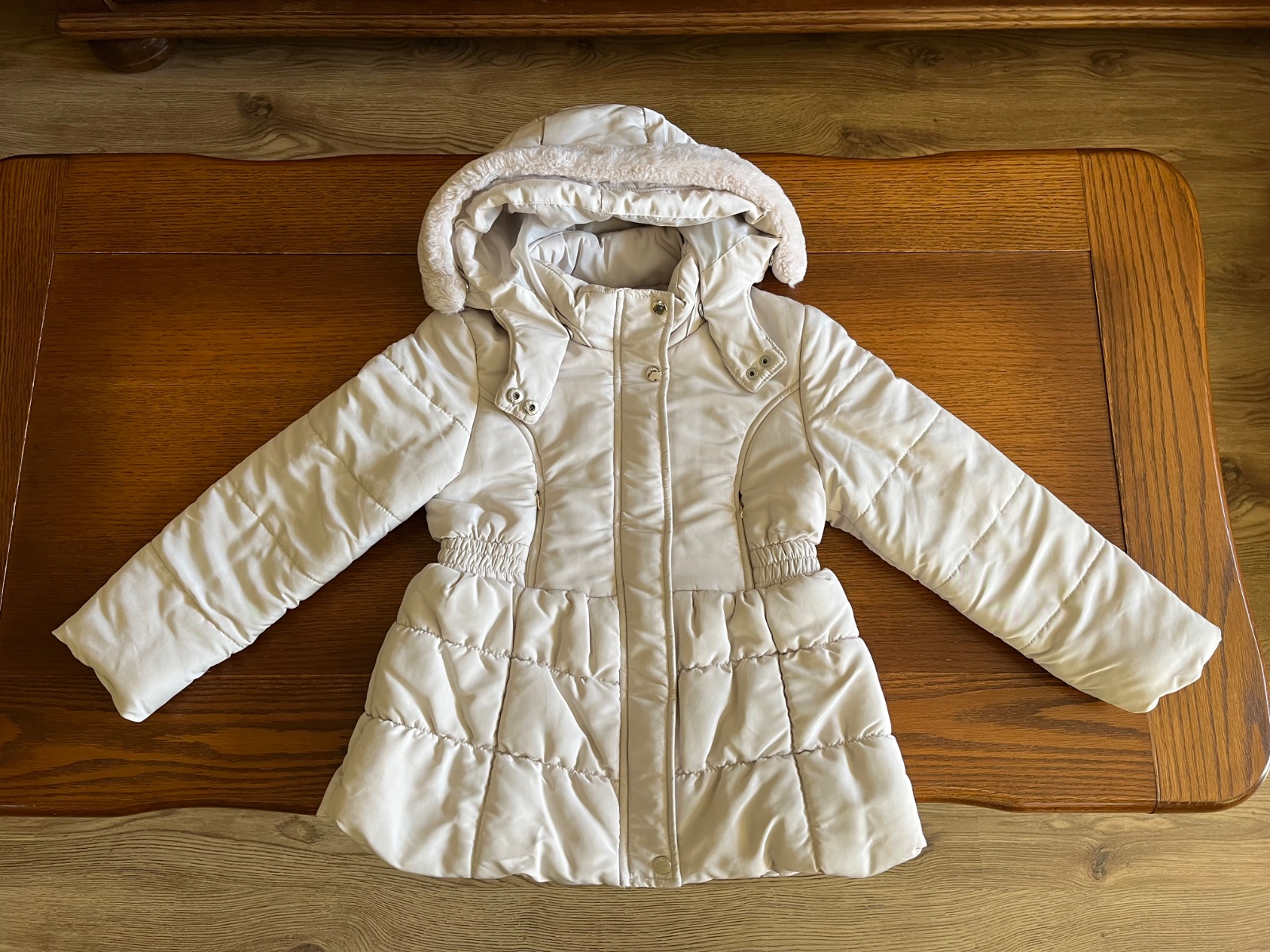 Prekrásny dievčenský strih, množstvo krásnych a prepracovaných detailov. Kapucňa sa dá odpojiť, rovnako ako aj krásna kožušinka hebučká ako zajačik.