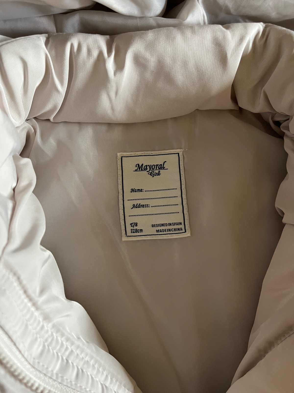 Na bežci zipsu a na nitoch vyrazený nápis značky Mayoral, po bokoch vrecká na zips.