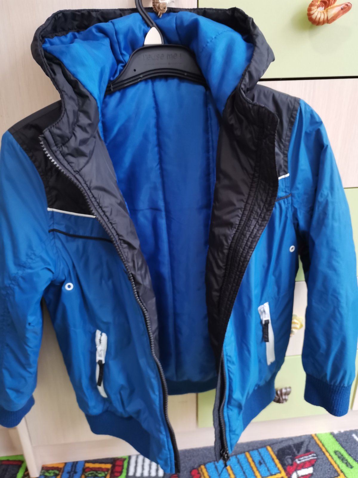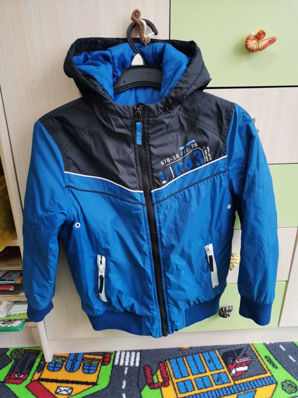 Krásna bundička, vatovaná, ideálna na prechod, číslo 122/128, krásne farby, my sme niekedy obliekli aj v zime počas teplejších dní, bola som s ňou max. spokojná, odporúčam, nosená, ale stále veľmi pekná....