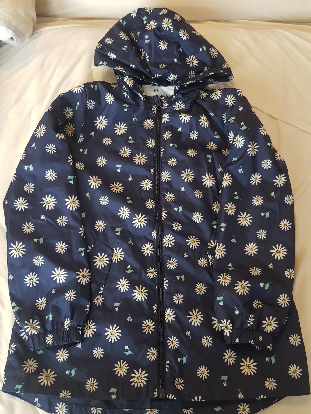 Tenká prechodná bundička na zips,vpredu trošku kratšia,vzadu dlhšia,dĺžka rukava 49 cm,dlžka bundy vpredu 57 cm a vzadu 62 cm,cena s poštou,veľkosť je na bunde 8-9 rokov