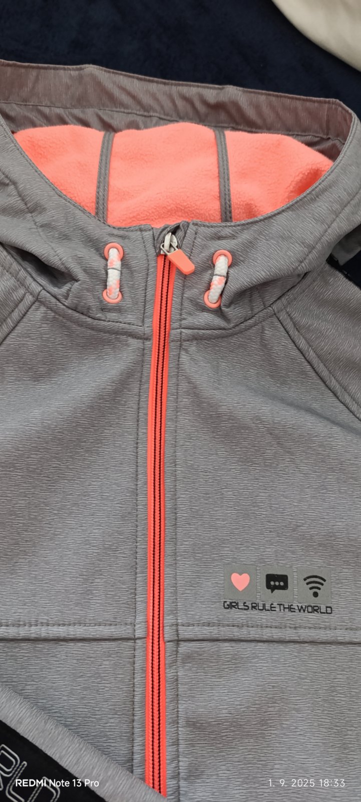 Softshellová bunda, malo nosené aj napriek tomu sa nám podaril fliačik na chrbte, inak bez poškodenia. Dĺžka predu 60cm, vzadu 63cm, šírka 2x46cm, dĺžka rukáva od krku 69cm. Cena +poštovné
