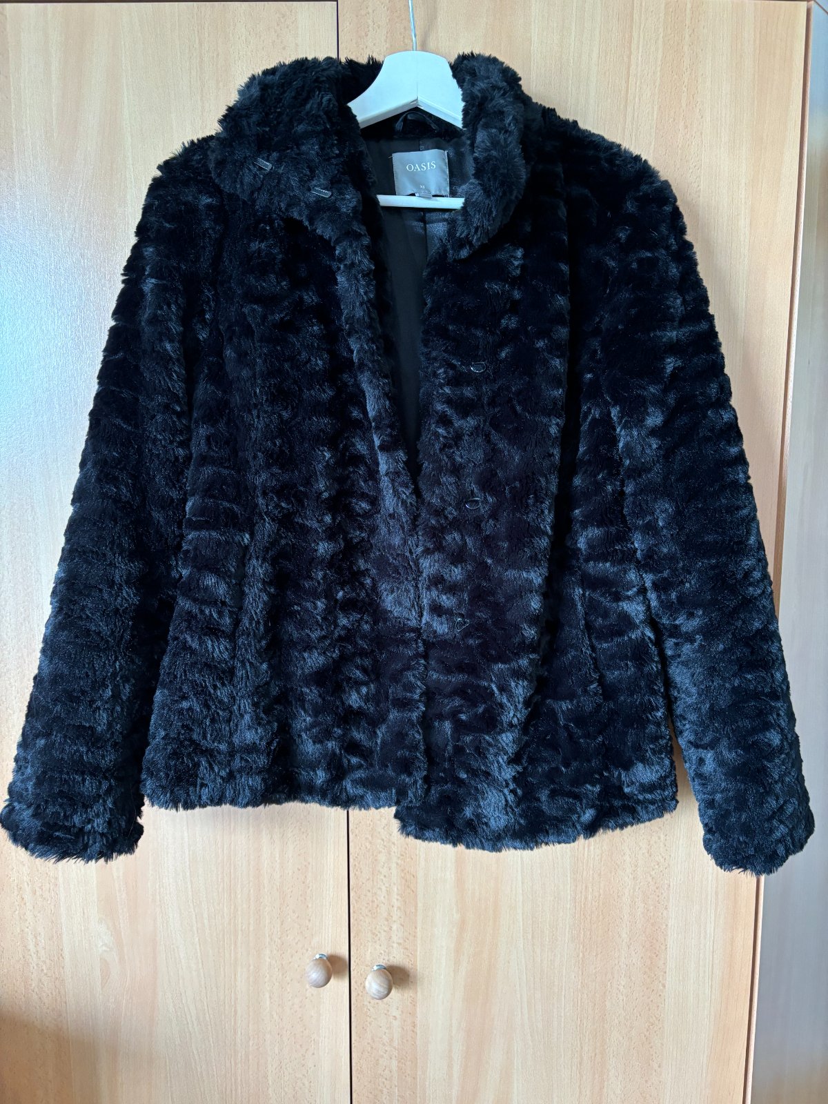 Predám čierny kožuch značky Oasis, veľkosť XS. Kožuch som mala na sebe len párkrát, čiže je ako nový. Osobný odber je možný v Bratislave a Nitre, alebo vám ho rada pošlem poštou.