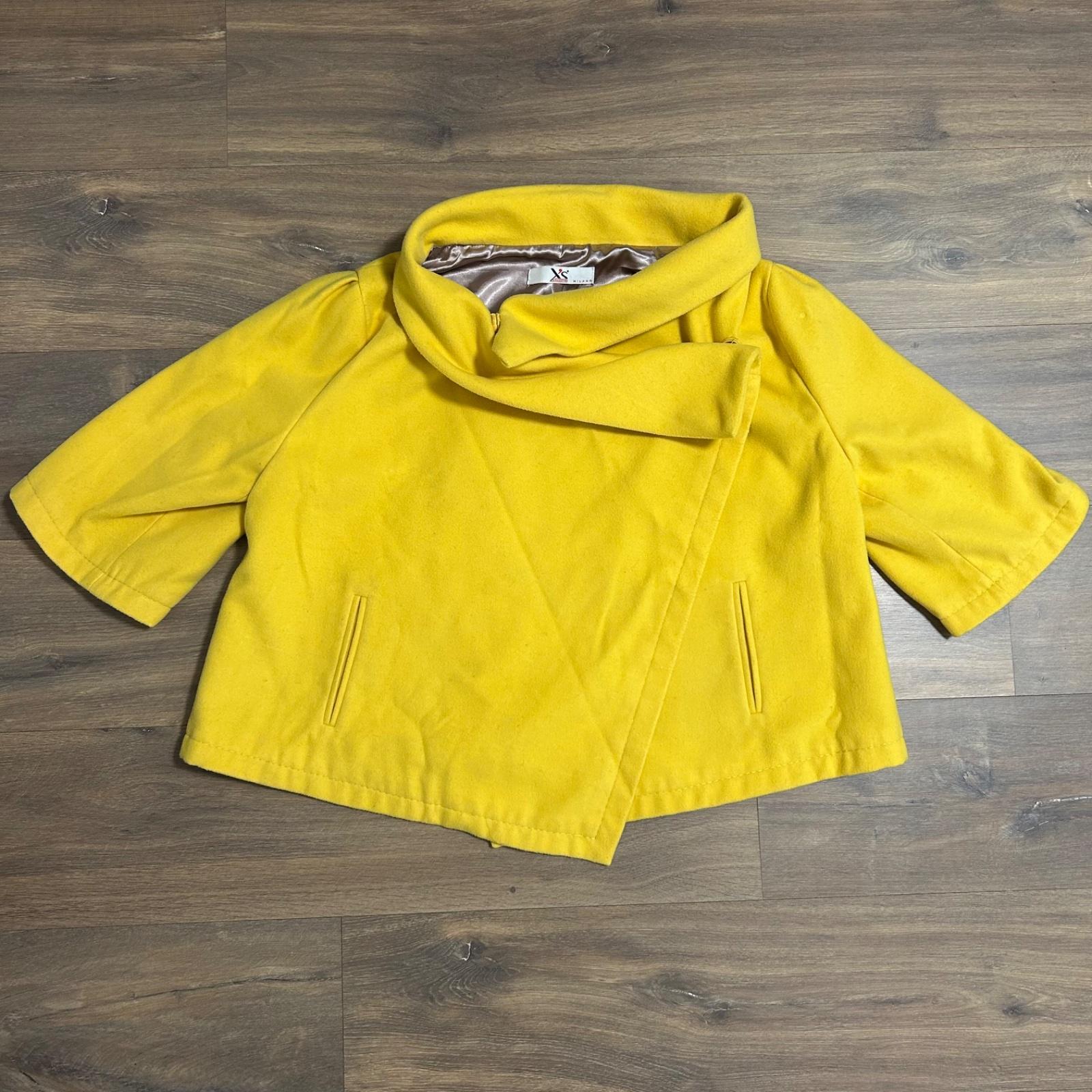 Kabátik má krátke rukávy, majú z neho vytŕčať rukávy svetra.