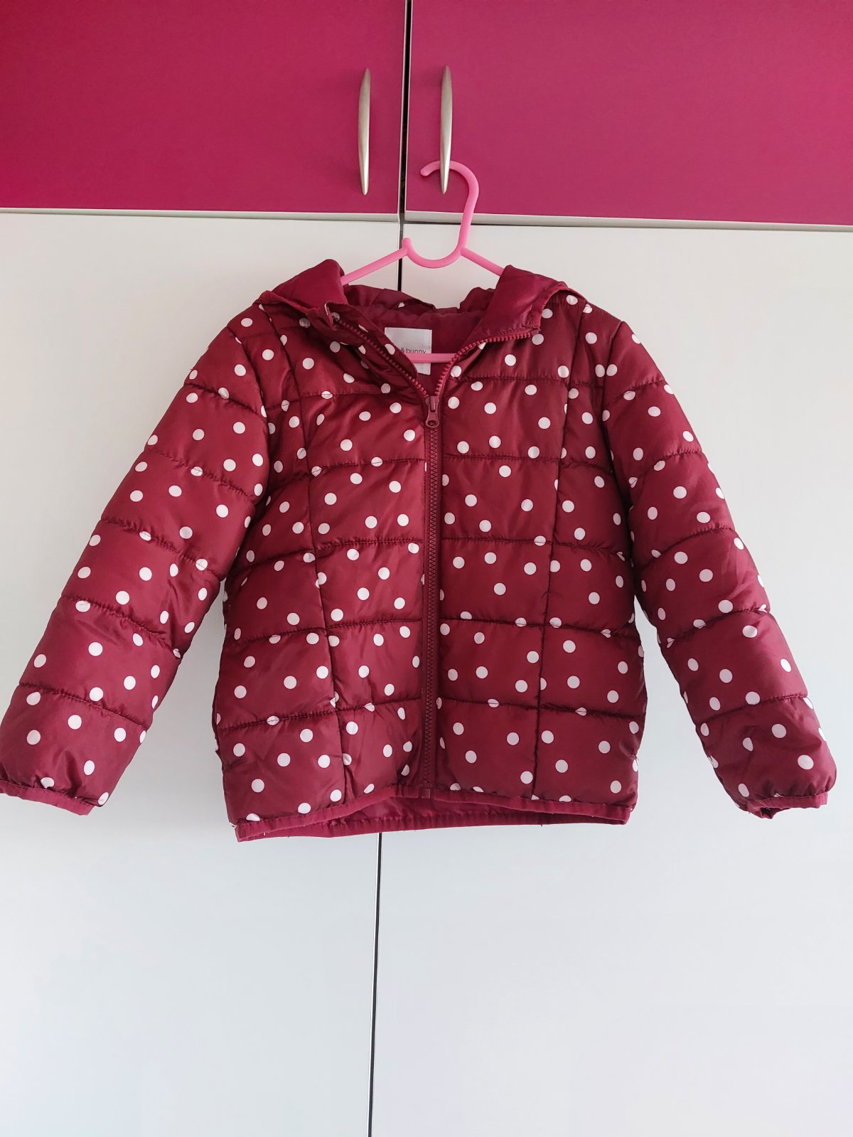Predám prechodnú obojstrannú (bledoruzová/kvietinková) budnu Sinsay, veľk. 116 (rozmery foto),bez poškodení, fľakov či dier, cvoky na bunde funkčné