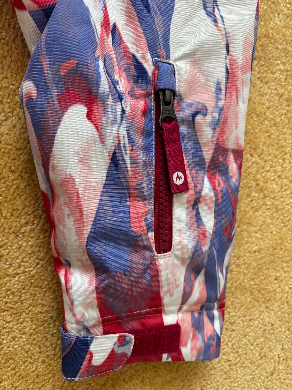 Nová krásna bunda s odopinatelnou kapucňou a snežným pasom. Veľkosť písaná XS, myslím že rak 122/128.