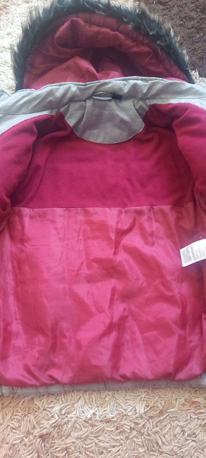 Kvalitná zimná bunda, zapínanie na zips, odoberatelna kapucňu s kožušinou, super stav, vzadu jemne ošúchaný napis… ináč skvelá.
