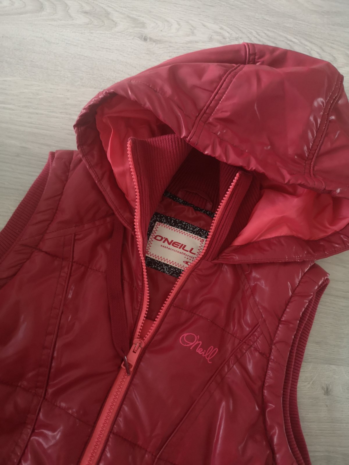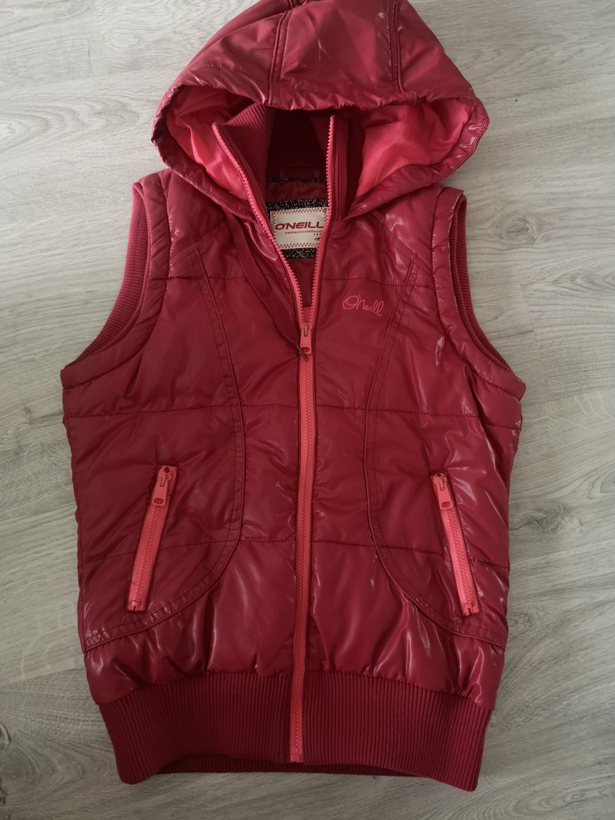 Predám vestu značky O'neill, velkost S, s kapucňou a zapínaním na zips. Dĺžka 62 cm, šírka pod pazuchami 45 cm.