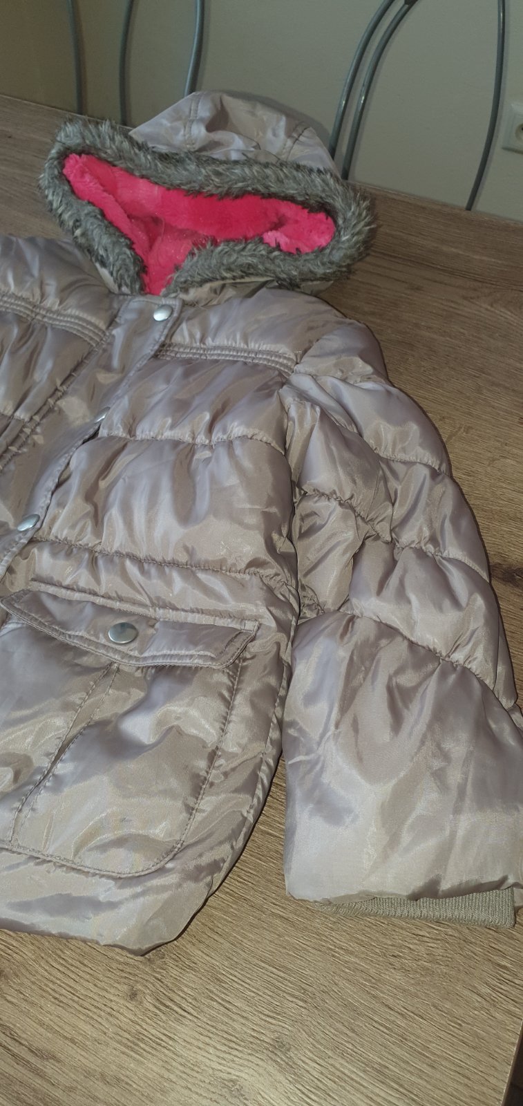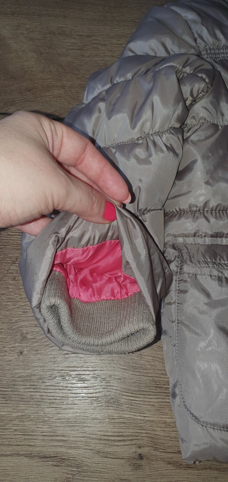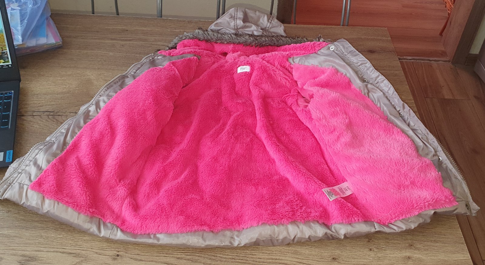 hrubá, ružová chlpatá podšívka, veľmi teplá, kapucňa je neodopínateľná, perfektný stav