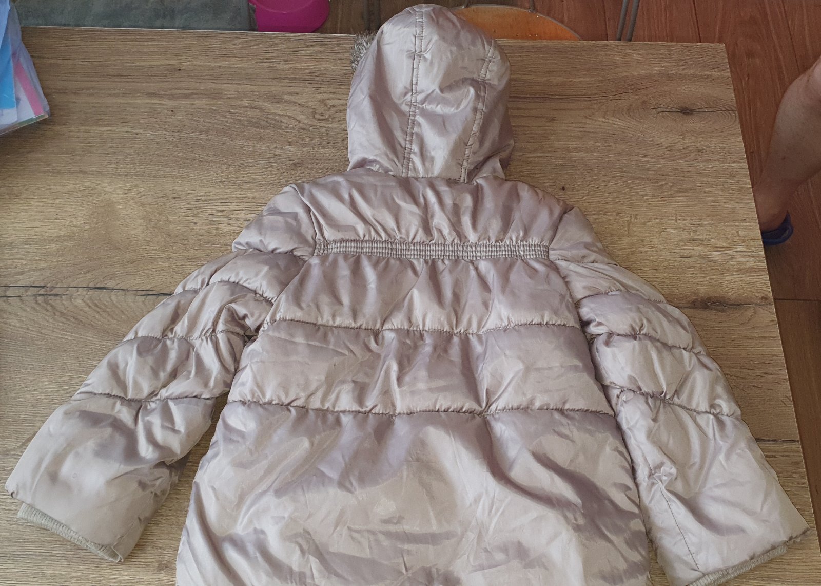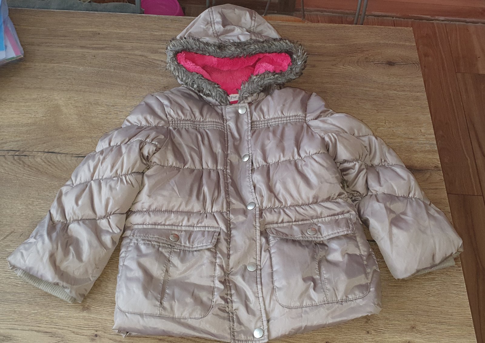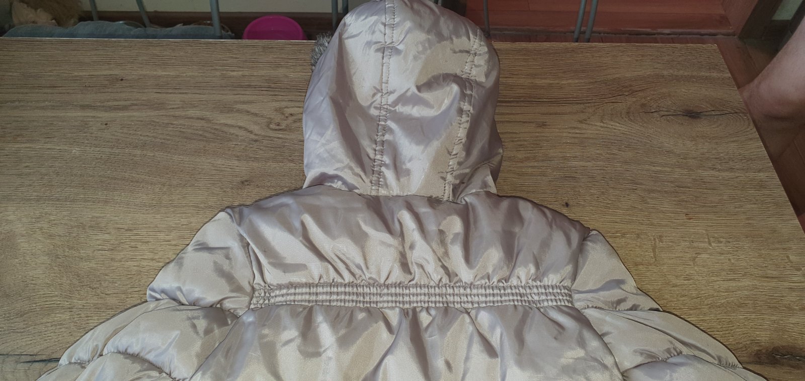 hrubá, ružová chlpatá podšívka, veľmi teplá, kapucňa je neodopínateľná, perfektný stav