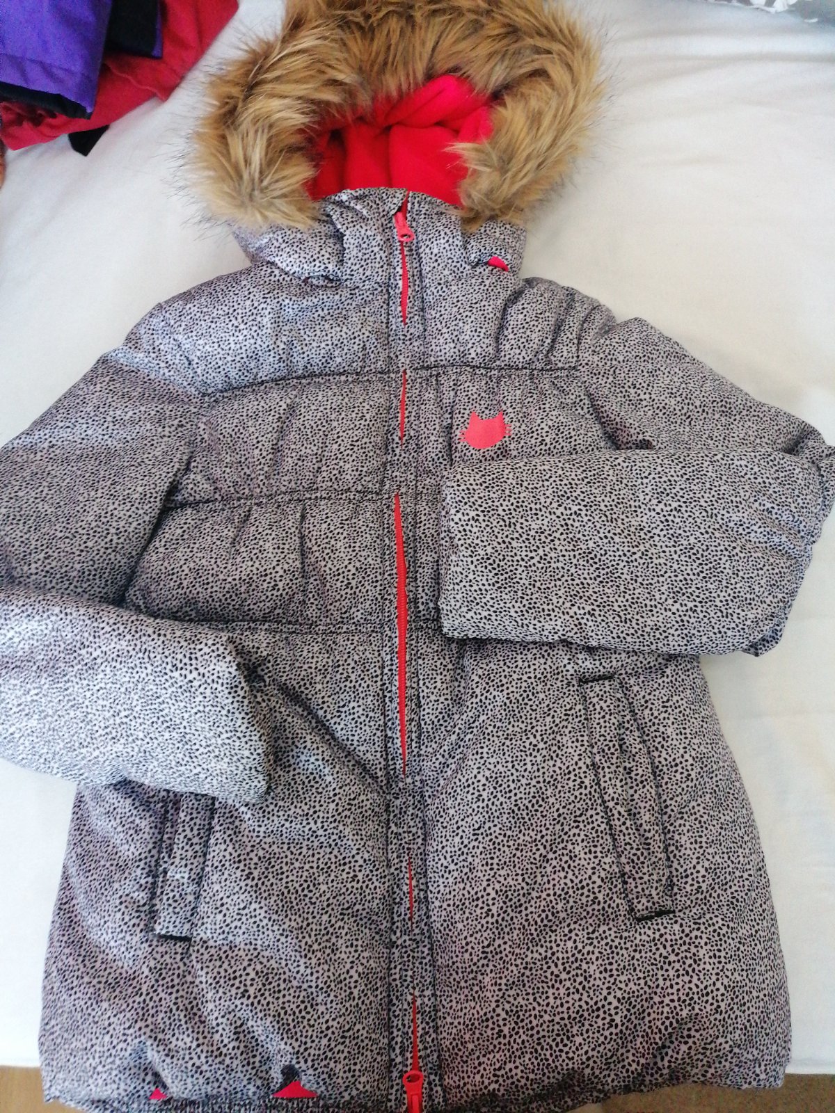 Krásna teplá zimná bundička vo vybornom stave pre slečnu, na štíhlejsiu postavu, zvnútra podšitá teplým flisom. Má kapucňu s kozusinkou, ktorá sa nedá odobrať. Málo nosená skor príležitostne. Rozmery sú celkova dĺžka 63cm, šírka 2x43cm a dĺžka rukava od kapucne 65cm a dlzka rukava od ramena 57cm. Cena je bez poštovného.