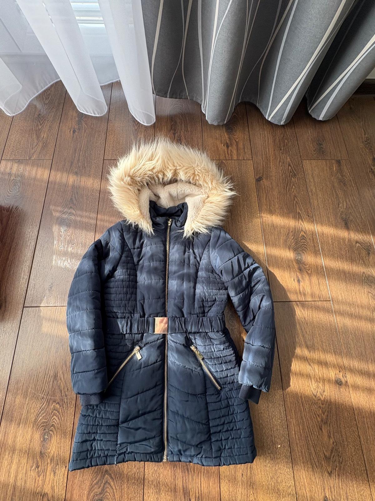 Predám dievčenskú zimnú bundu, je predĺžená, tm.modrá, s pevnou kapucňou, podšitá tyrkysovou flisovou podšívkou, opasok, vrecká na cvoky, ma chrbtovej strane dole je reflexná značka, rukávy majú vn...