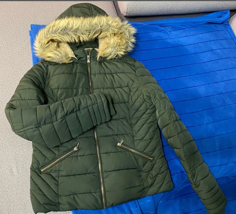 Zimná bunda zelenej farby...ako nová...nosená na striedačku s inými ...teplučka...veľ.38.cica na kapucni pevná...