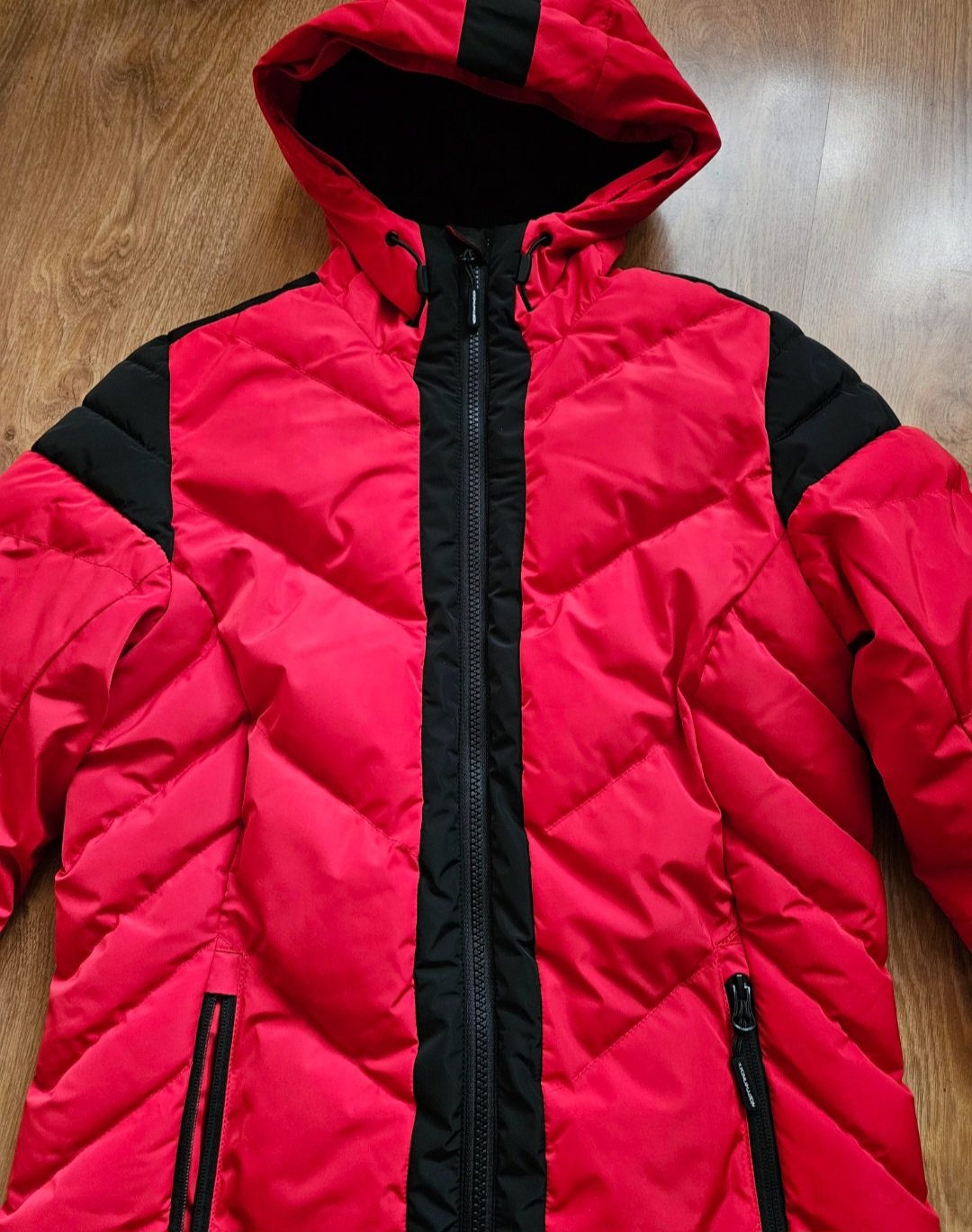 Ako nova. Bundicka je nepremokava vyteplena. Je velmi lahucka. Na spodku pevnejsi patent. Sedi aj na XS.