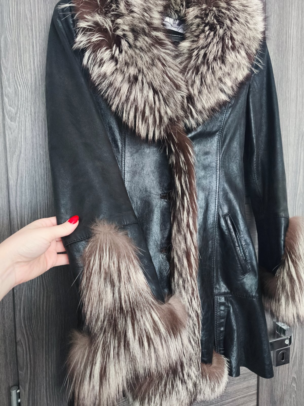 Nadherny taliansky kabatik z makkej jahnacej koze v kombinacii s polarnou liskou.