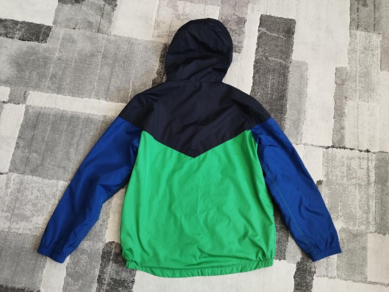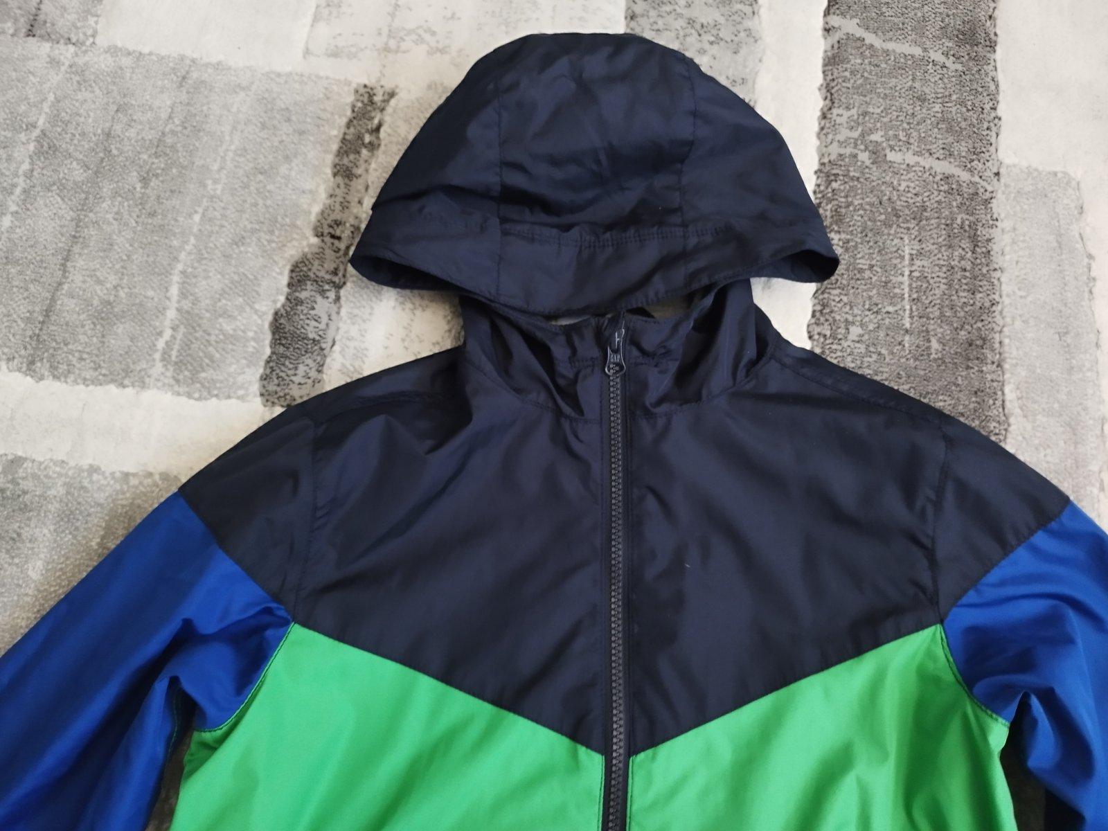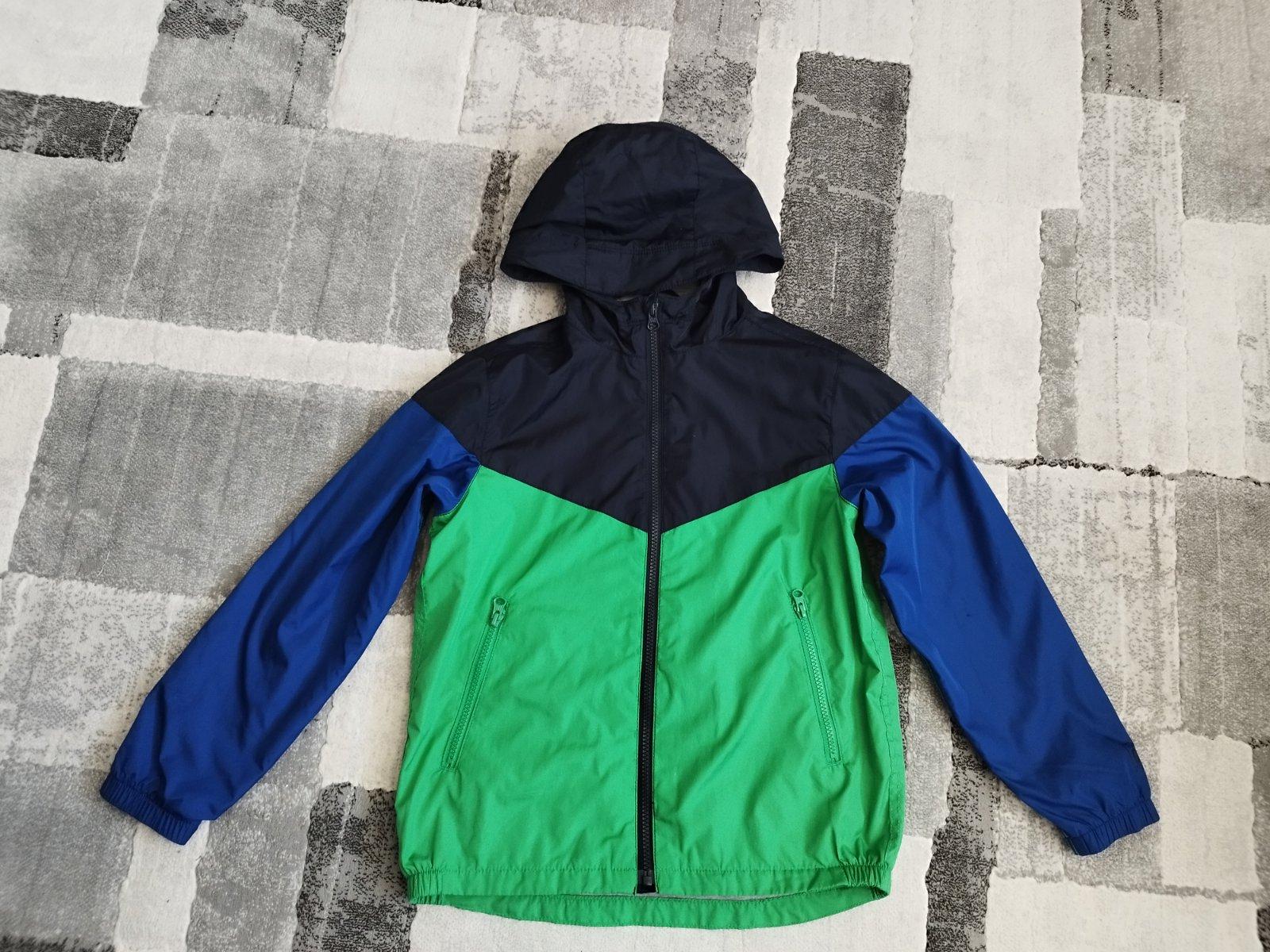 Prechodná bunda stále v peknom stave. Veľkosť 134-140 (10-11).Na bunde sú malé fliačiky (viď foto)není bijuce do očí a jemne šuchnutie nič vážne ponoríte aj do školy..Vnutri je látka . nepremokne ,neprefuka .