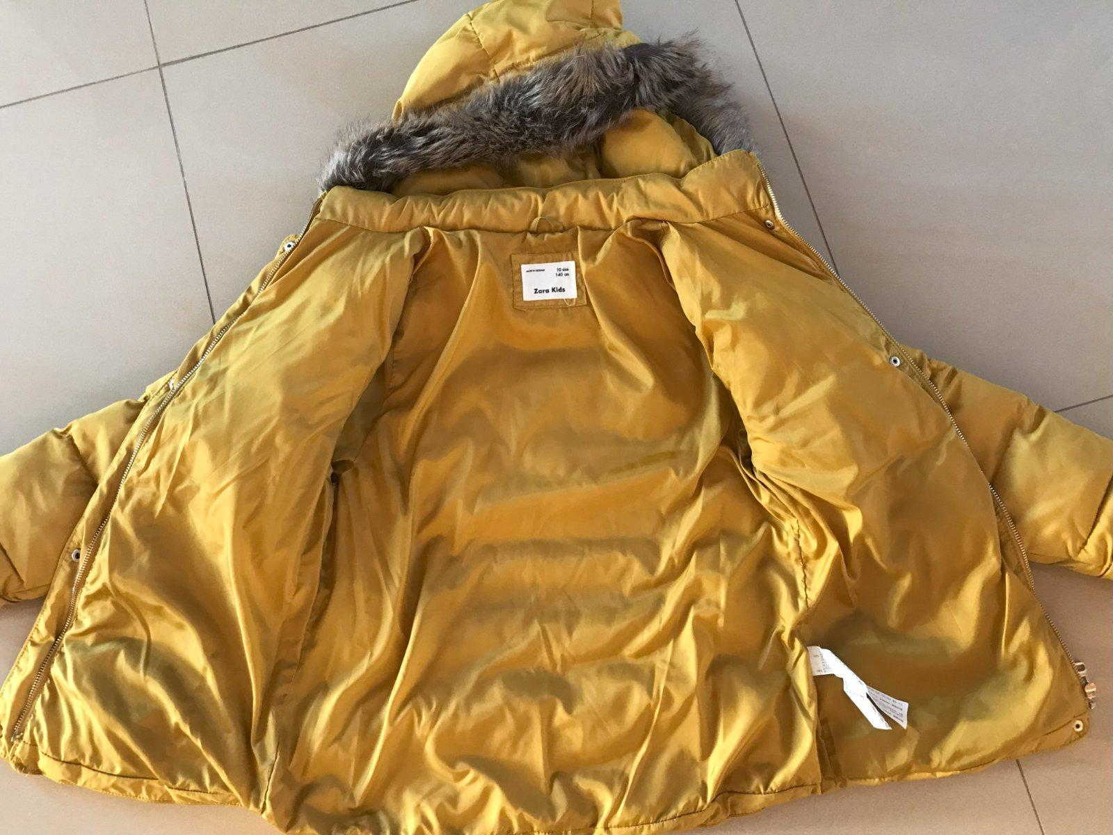 Stylova bundicka na prech.obdobie,miernu zimu Zara v.140 (dlzka 60,ruk.58,sir.44),moderna horcic.farba,zapinanie na cvoky,vnytri jemna kozusinka,lahucka,super stav bez poskodeni.pc.29e,teraz 8e