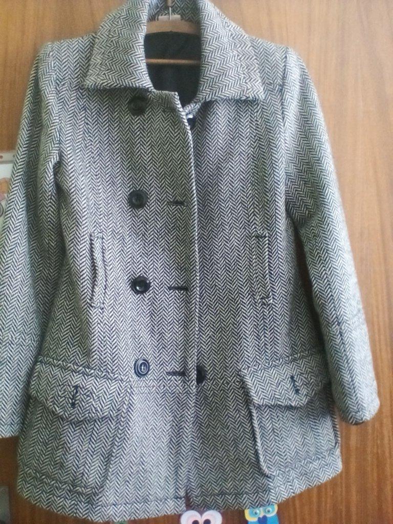 dámsky kabát č. S /M, v dobrom stave bez poškodenia, , Rozmery :dĺžka - 87cm,obvod hrudníka - 47cm,dĺžka rukáva od ramena - 62cm