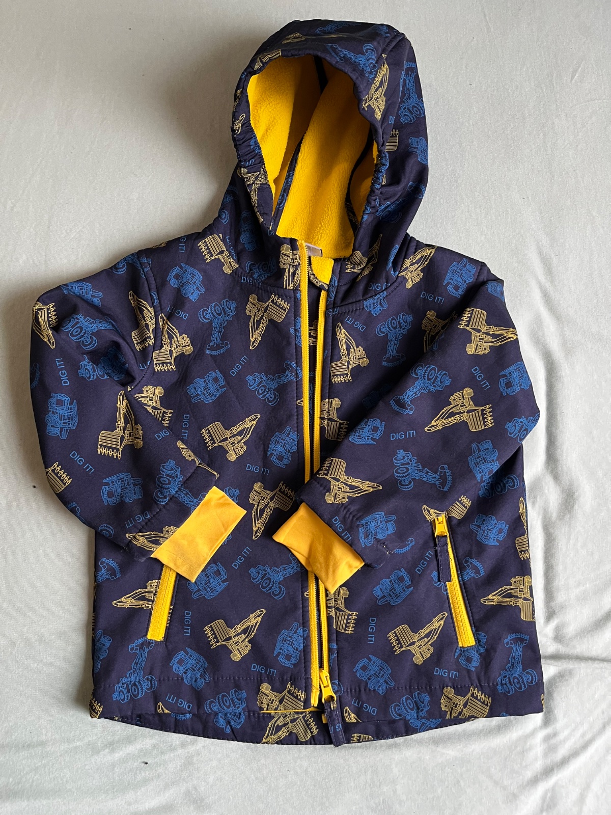 Sedí na 98 syn ju nosil 3 ročný v peknom stave jemne zateplená na rukávoch vidno tmavé nosenie alebo mini zmolky nič extra inak je neznicena v peknom stave niečo ako sofshell