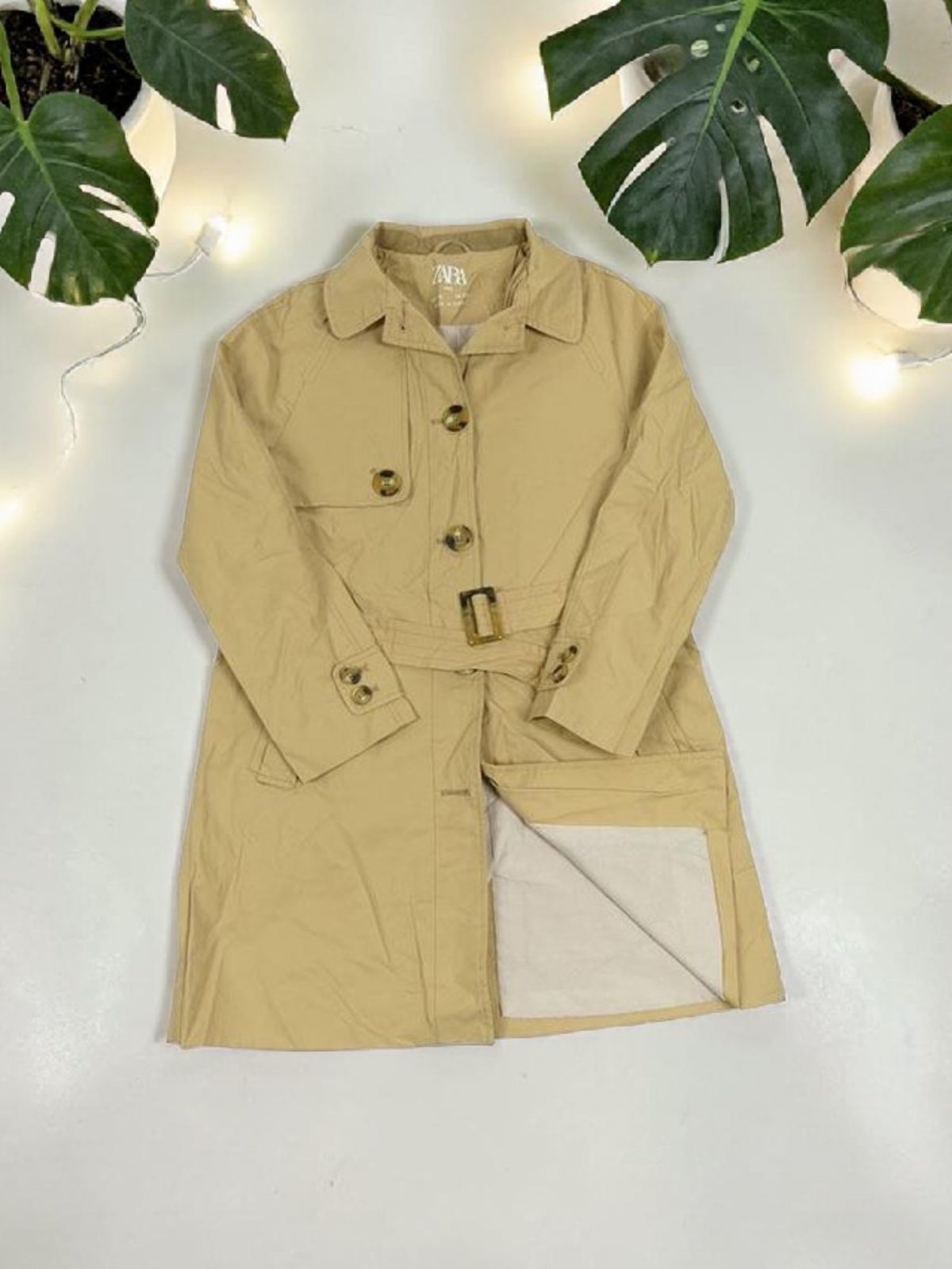 detský krémový trenčkot s opaskom Zara