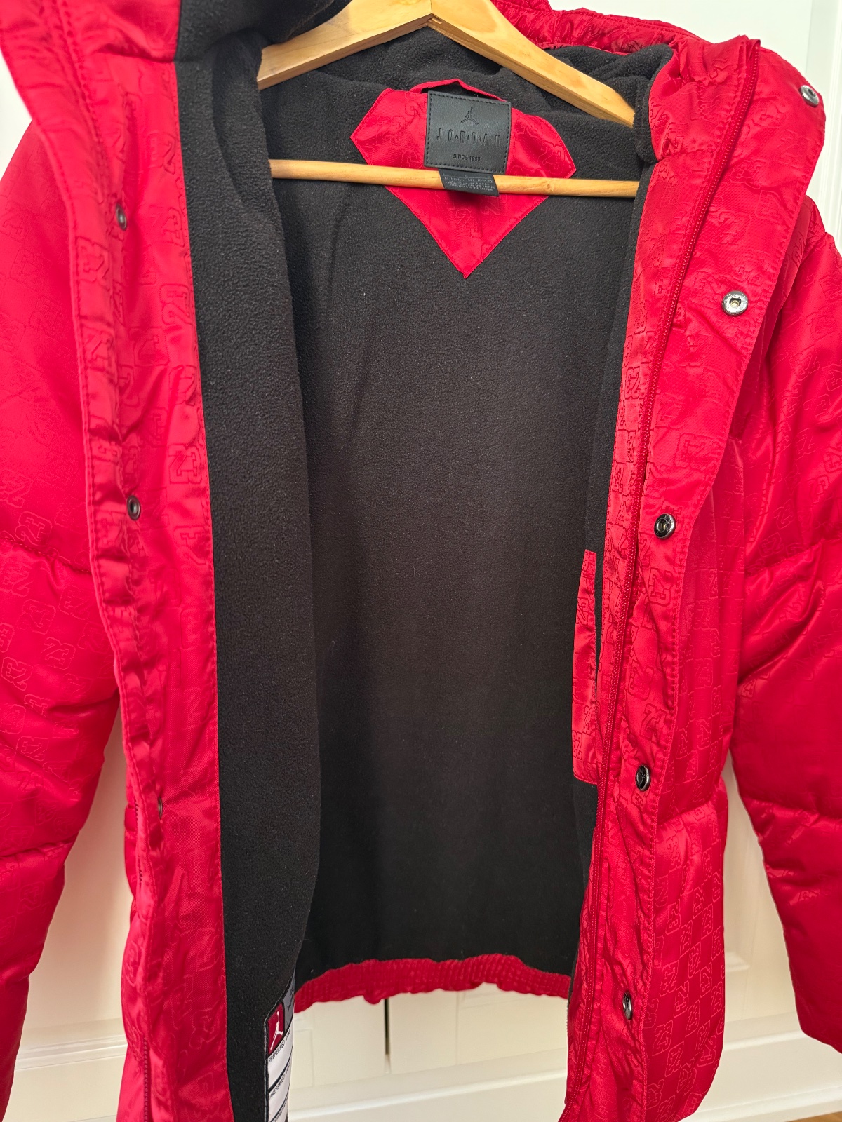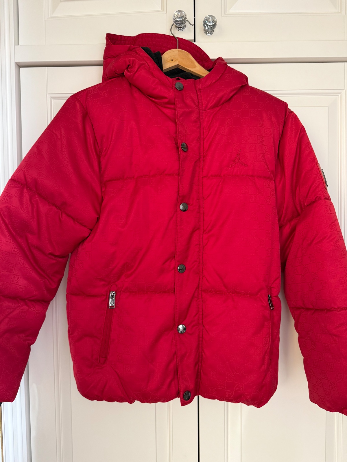 Cervena zimna bunda Jordan velkost L 147-163 cm.
