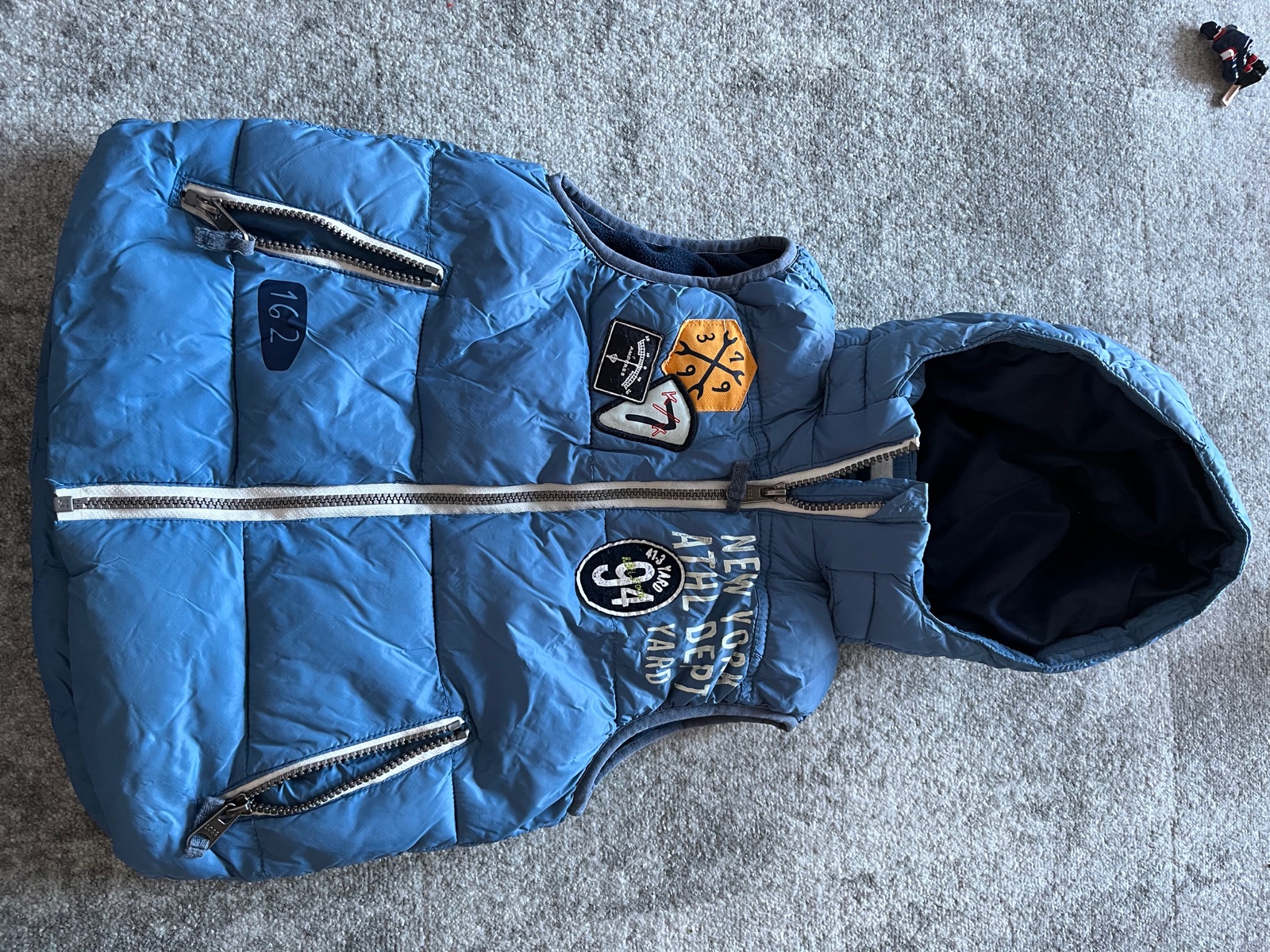 Úplne zateplená vesta H&M veľkosť 116 (5-6 rokov), s odnímateľnou kapucňou. Kapucňa je tiež zateplená.