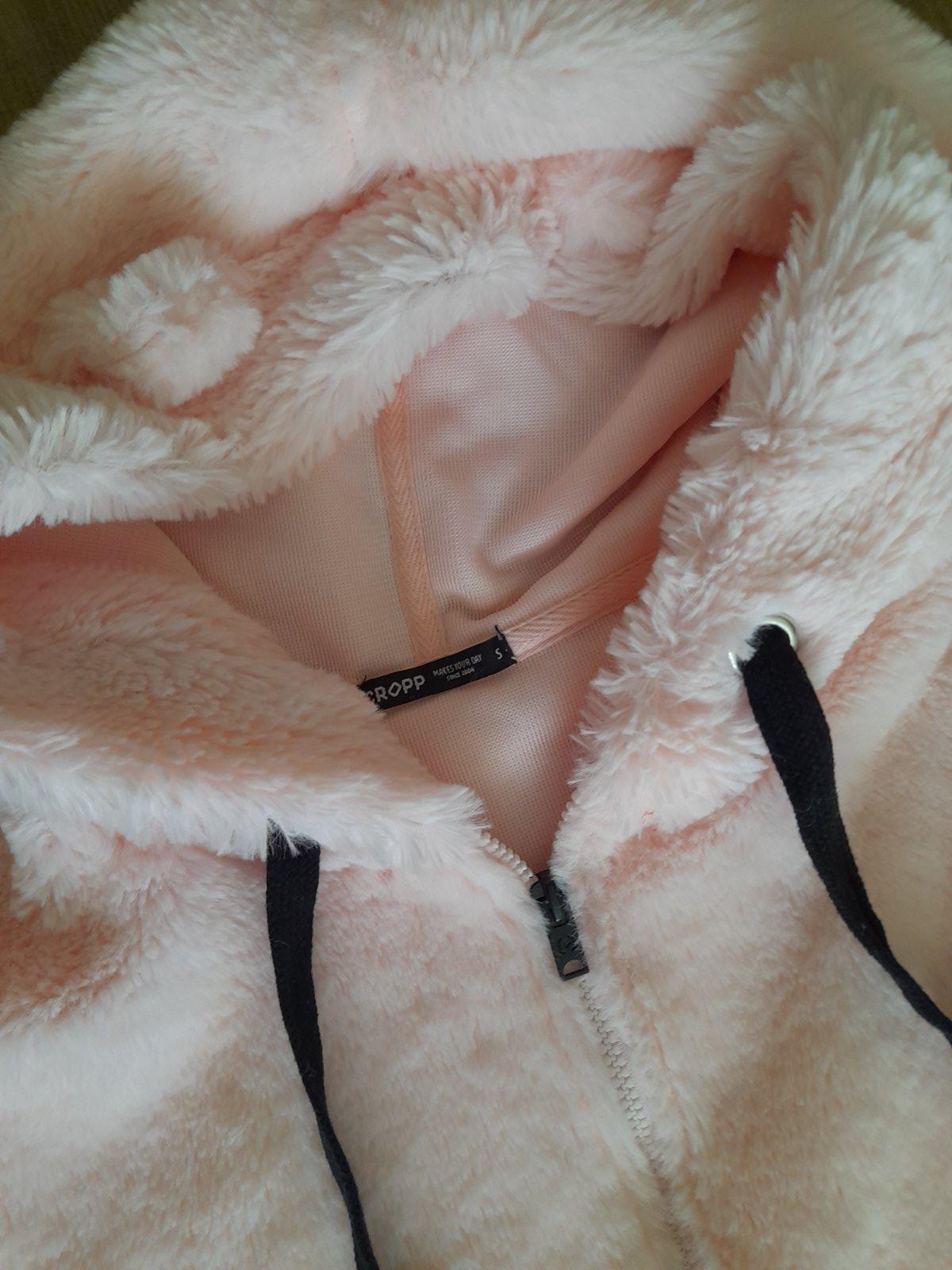 pekná, jemná bundička s kapucňou, dĺžka 64 cm, šírka 50 cm x 2, rukáv 66 cm