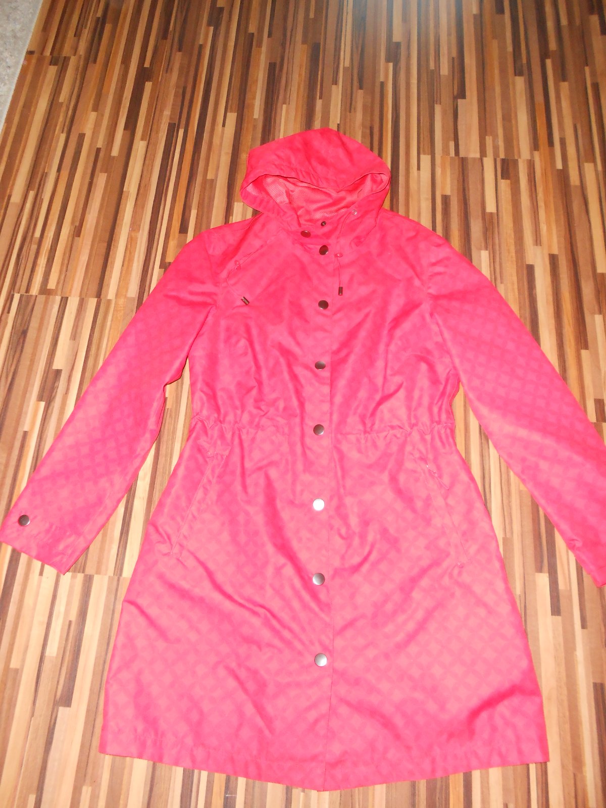 Bunda do dažďa, v TOP stave, nosené 1x, bez dier, fľakov, žmolkov, značka TCHIBO, dĺžka rukávu od krku 75cm (rukáv sa dá zúžiť sú tam 2 gombíky viď foto), šírka podpazuší 52cm x2 (pás sa dá zúžiť vnútri bundy viď foto), dĺžka 93 cm, má 2 vrecká. Farba je červená. Cena + poštovné. (C)