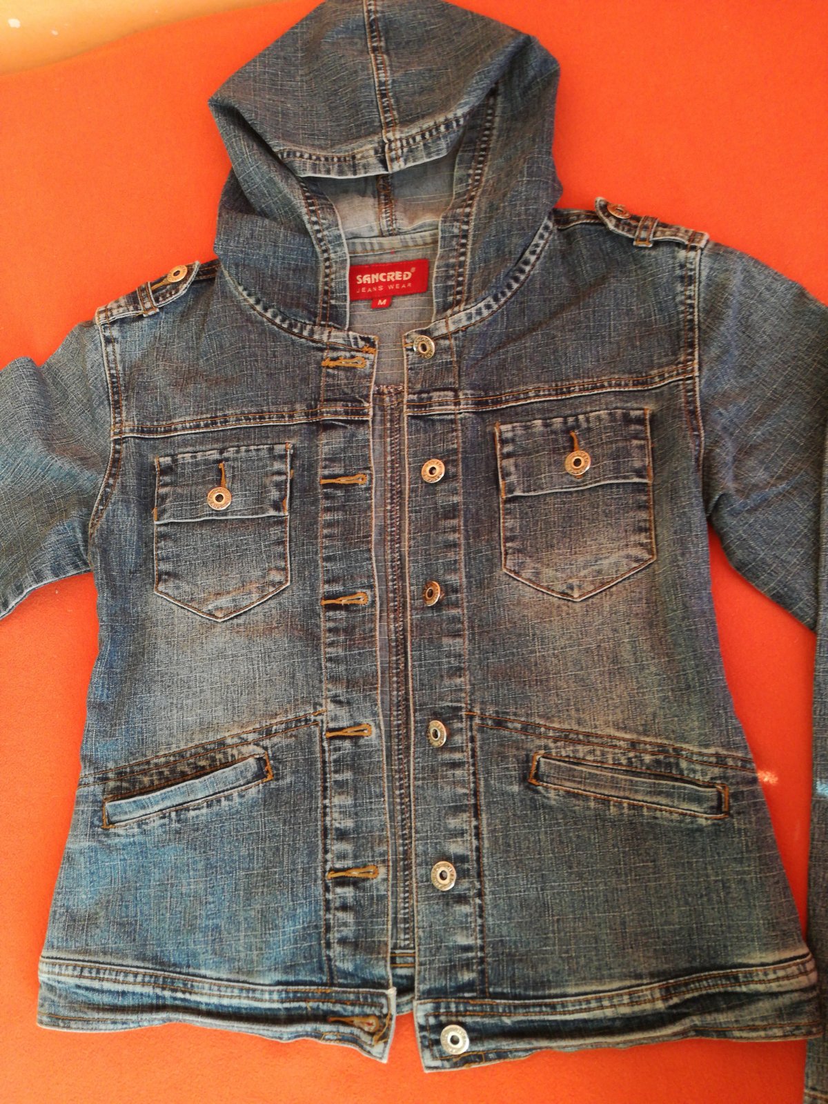 ZN. SANCRED, JEANS WEAR, veľkosť písaná M, ale je tak na S, pridávam rozmery, merané v kľude ašte povolí