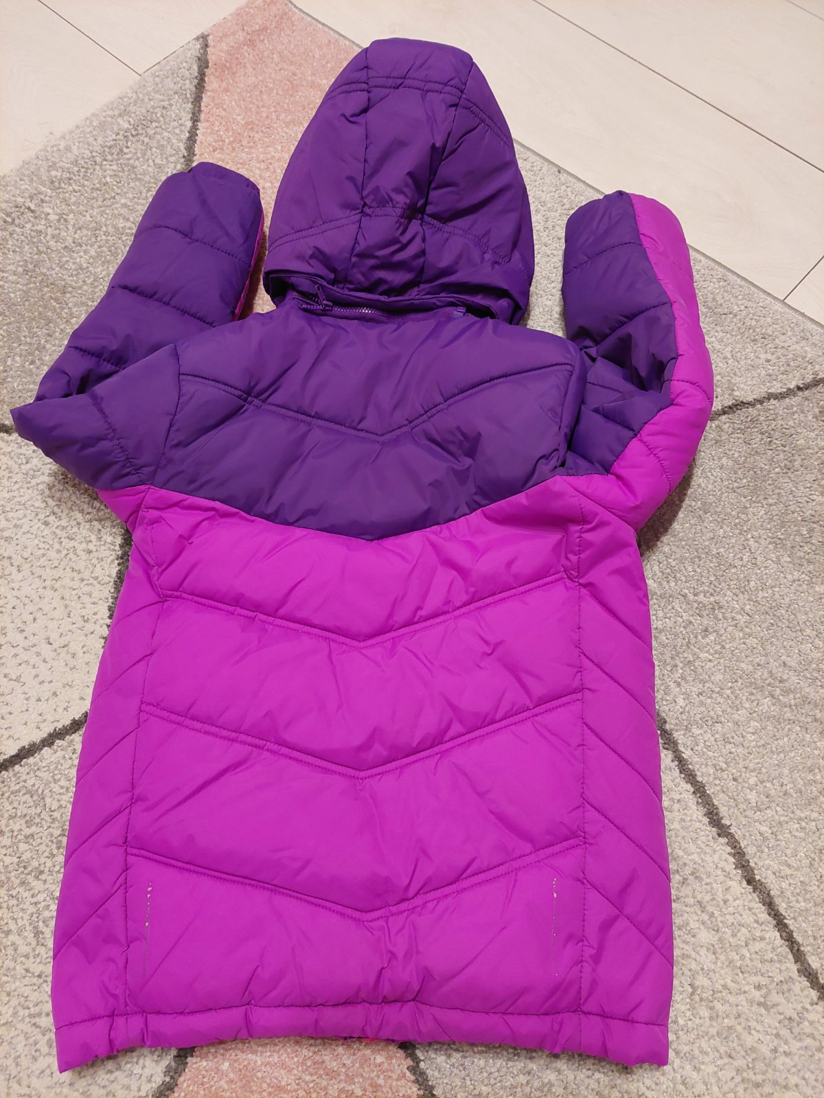 Krásná,teplá bundička,2 x oblečená,no je nám stále veľká...Neposkodena, šírka pod pazuchami 44 cm, krk - rukav 59 cm, dĺžka bundy 56 cm