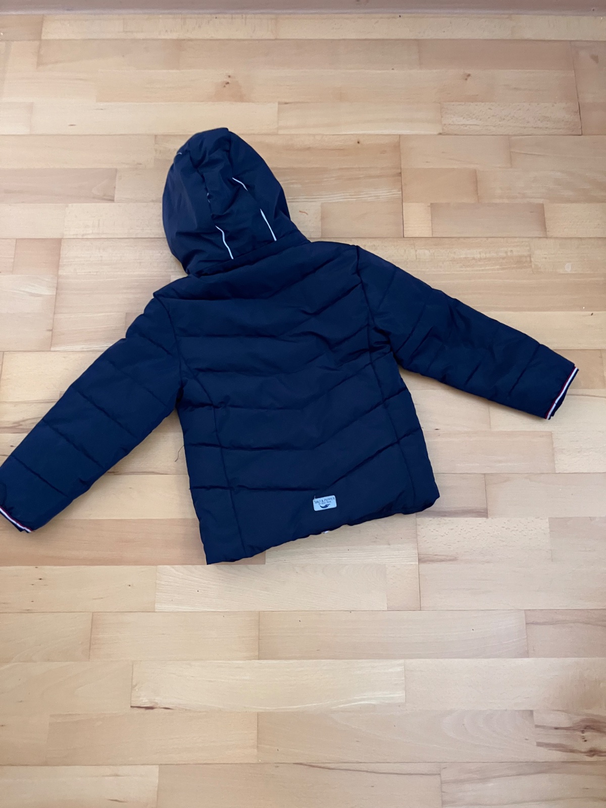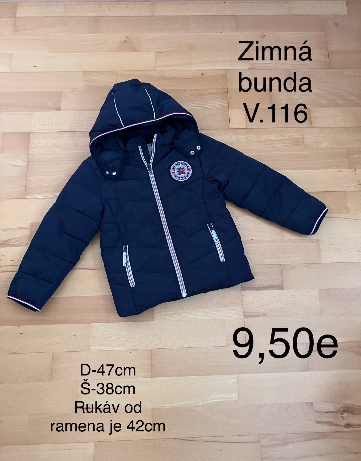 Bundička na teplejšiu zimu alebo prechodné obdobie. Keďže sme ju mali radi, má už známky nosenia. Zadný reflexný obrázok je už vypratý, má jemné zatrhnutie na rukáve (avšak nepára sa), na kapucní s...