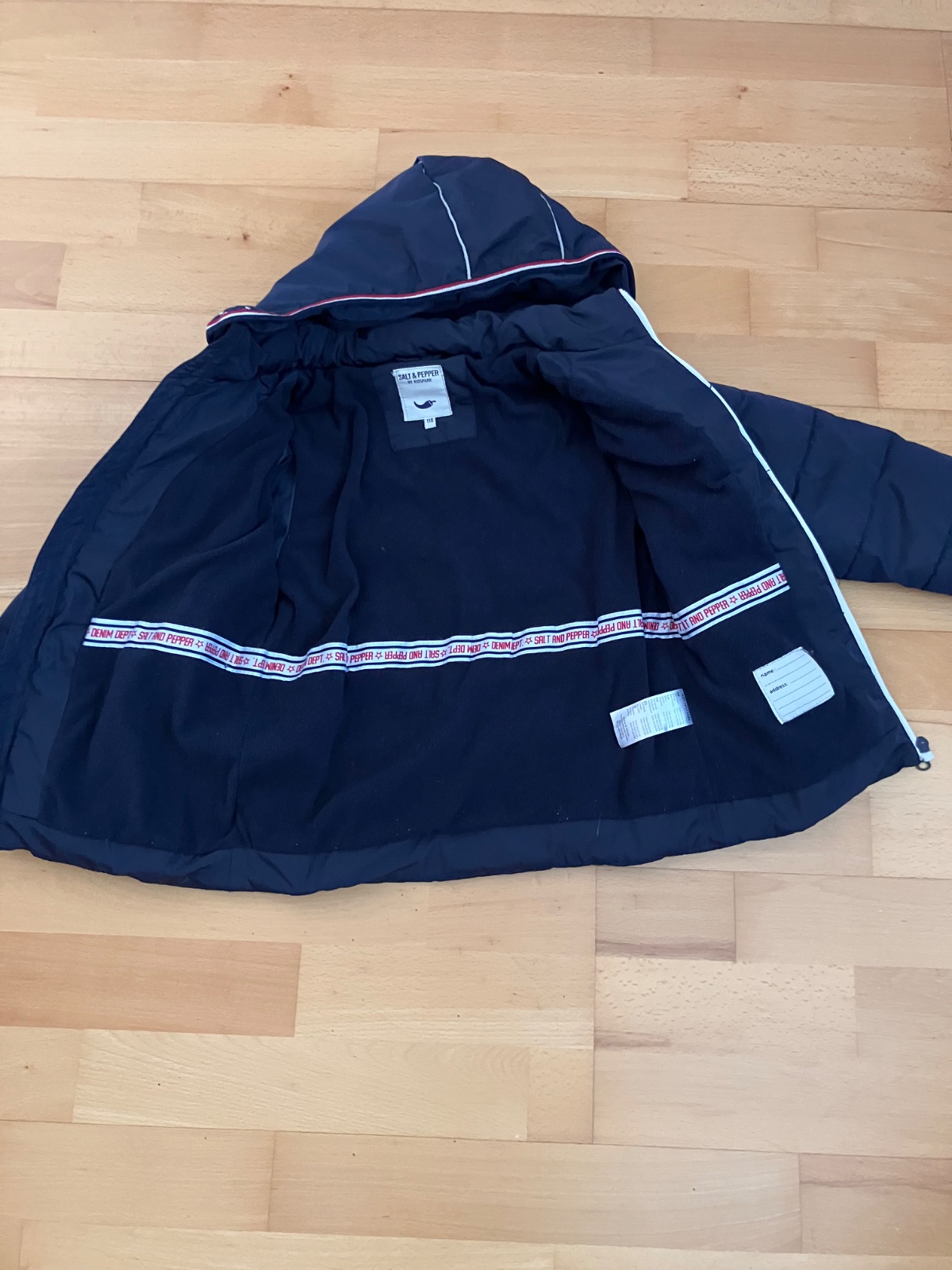 Pekný noseny stav, vo vnútri ovečka. Kožušina na kapucni stále pekná. Veľkosť písaná 122 ale je menšia, treba sa riadiť rozmermi. Preto uvádzam 116. Verím že ešte niekomu poslúži a mne sa uvoľní ...