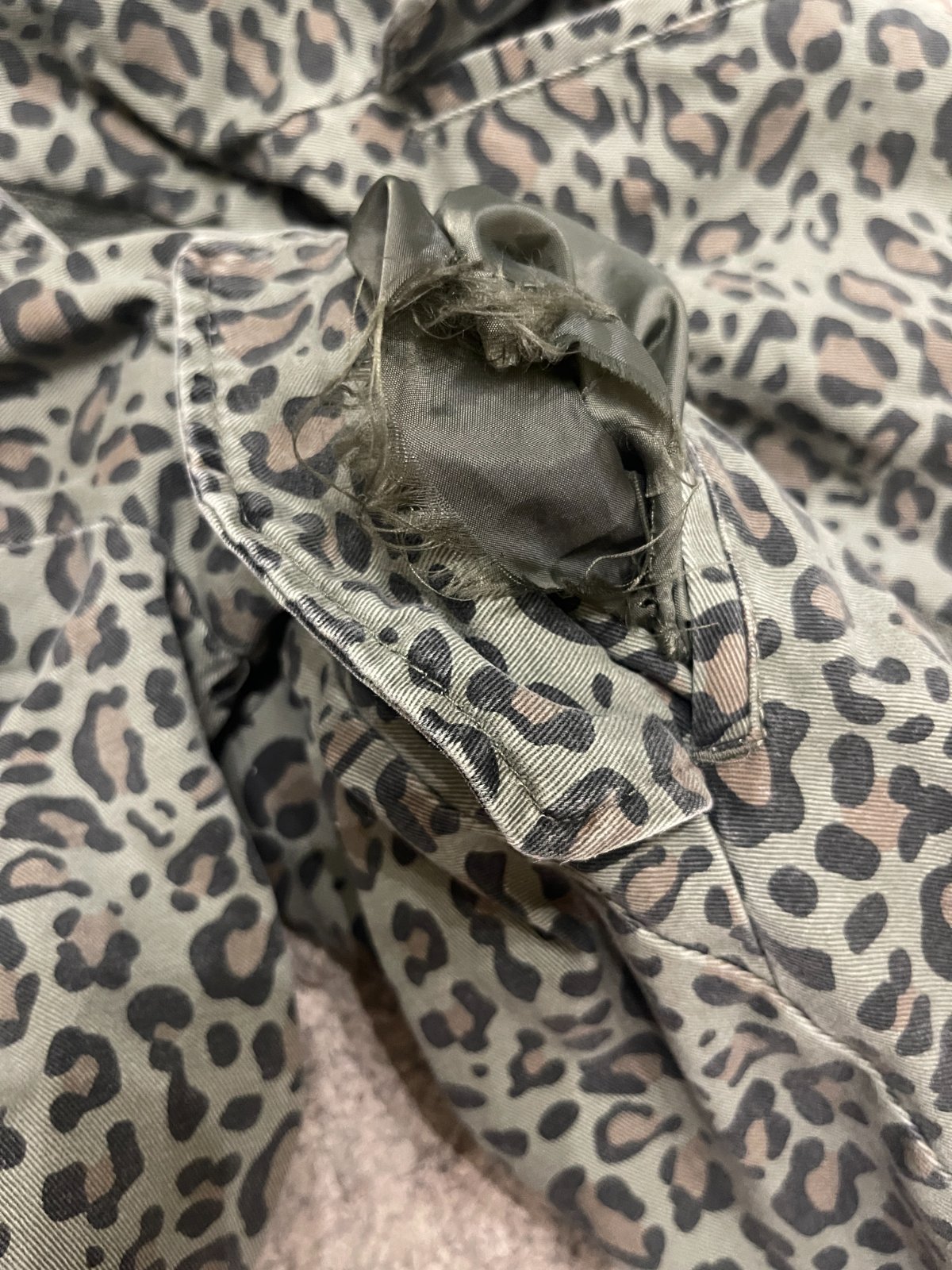 Na štítku vnútornej látky nápis fixkou na bunde šťítok čistý