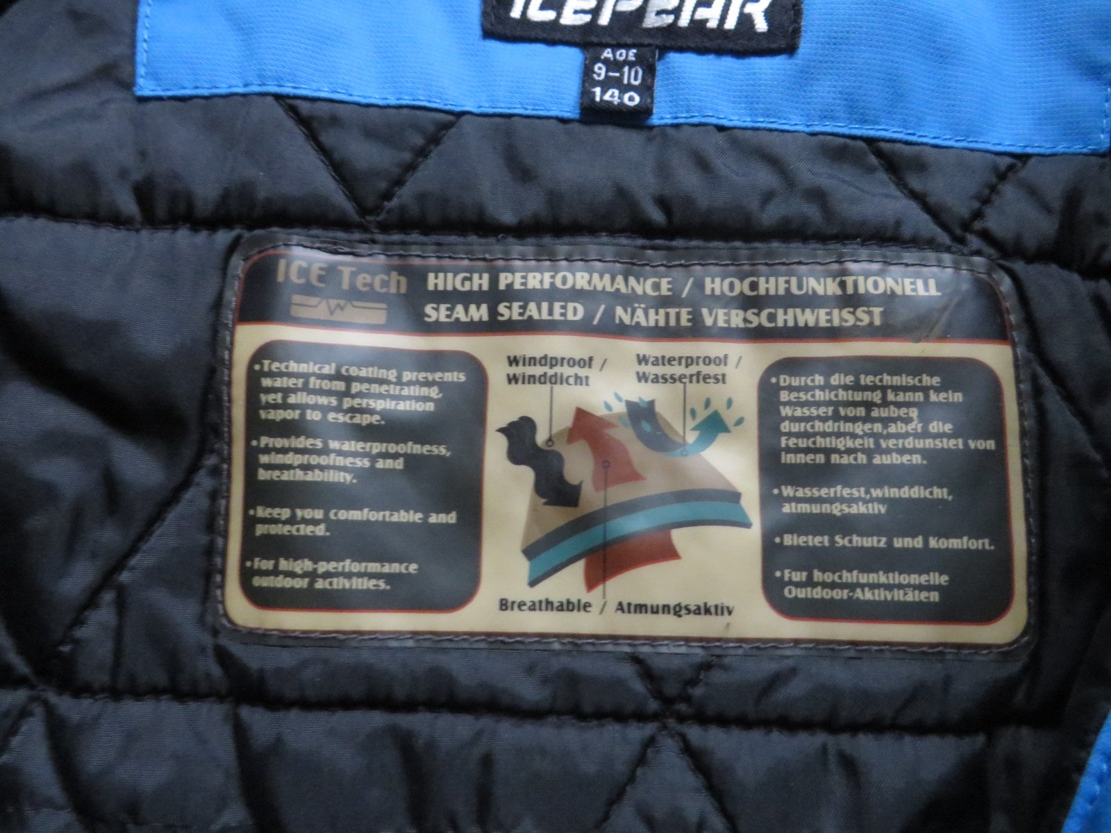 Predám zimnú športovú bundu pre chlapca, vhodnú do snehu, lyžovanie, sánkovanie. Veľkosť je 140, značka je ICEPEAK. Ide o prepracovanú bundu, s kvalitnou kapucňou, vnútorné rukávy, ktoré sa navlečú na palce, a nedostane sa do rukáva sneh. Bunda je stále funkčná, nepremokne ani neprefúka, má vnútorný snežný pás proti prefúknutiu. Je na nej ale vidieť nosenie, farba už nie je taká modrá - sýta, na rukávoch sa už objavuje predratie. Všetko je odfotené. Rada by som ju ešte niekomu za symbolickú cenu posunula, ešte vie poslúžiť.