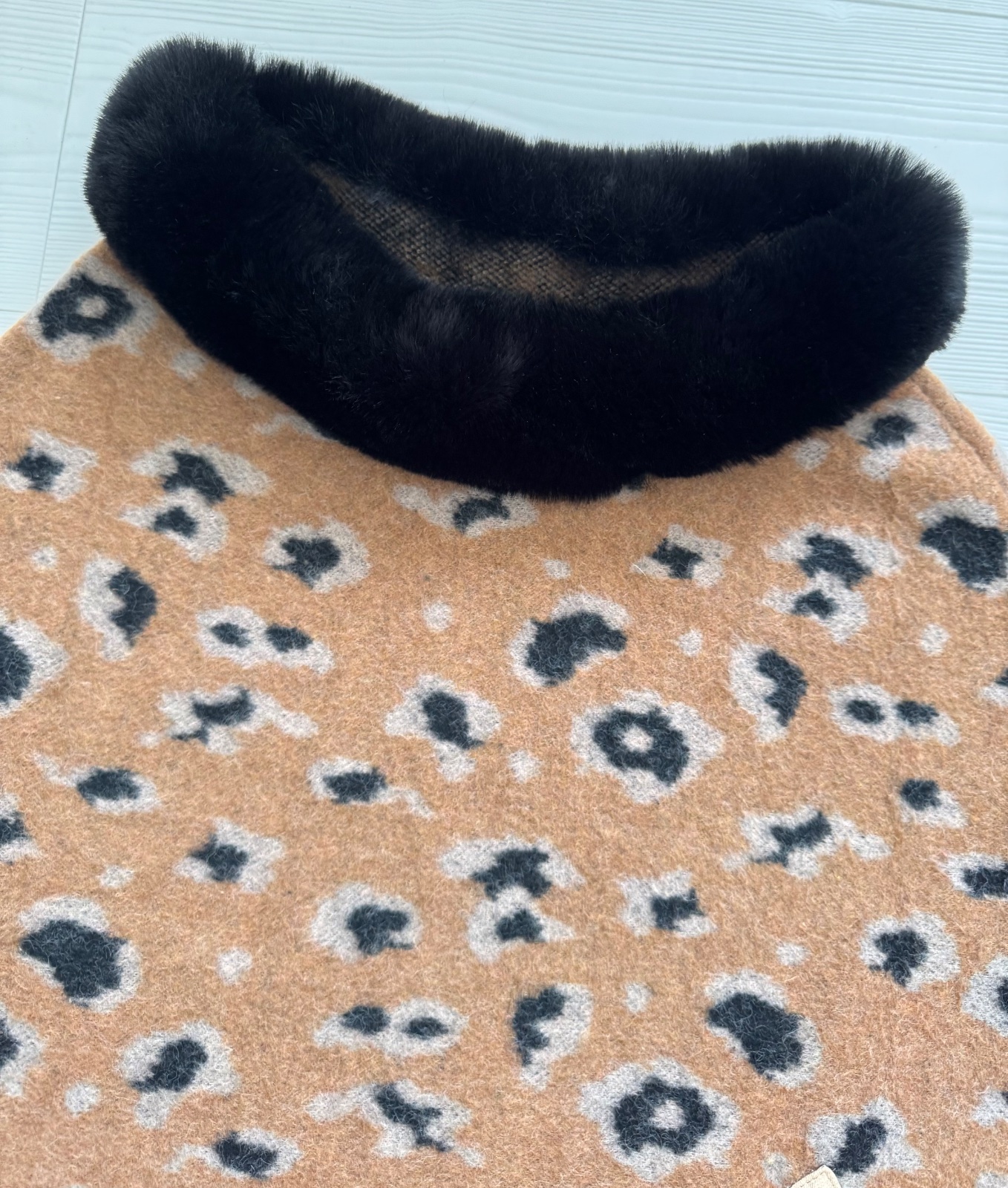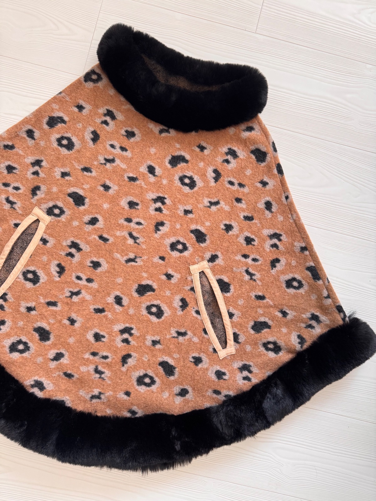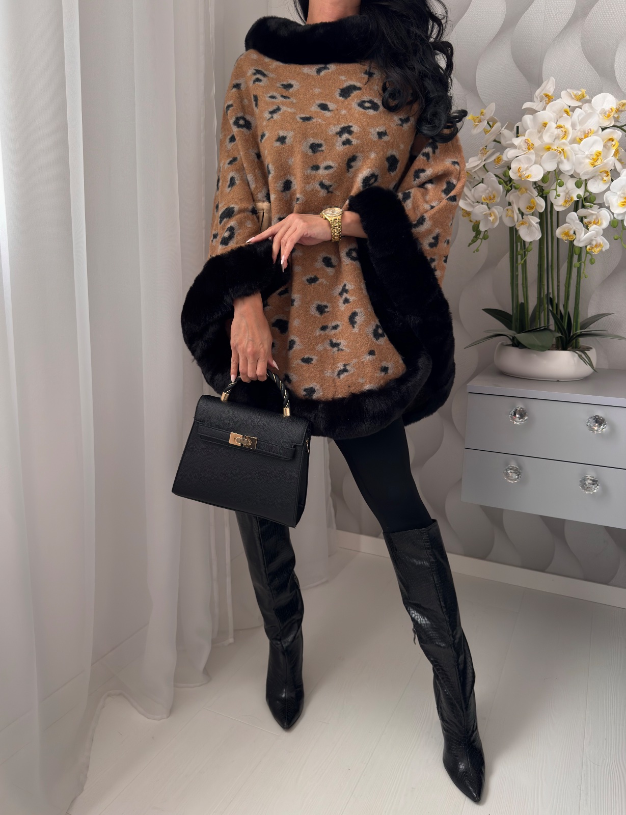 Zaujímavé pončo lemované s čiernou kožušinou.