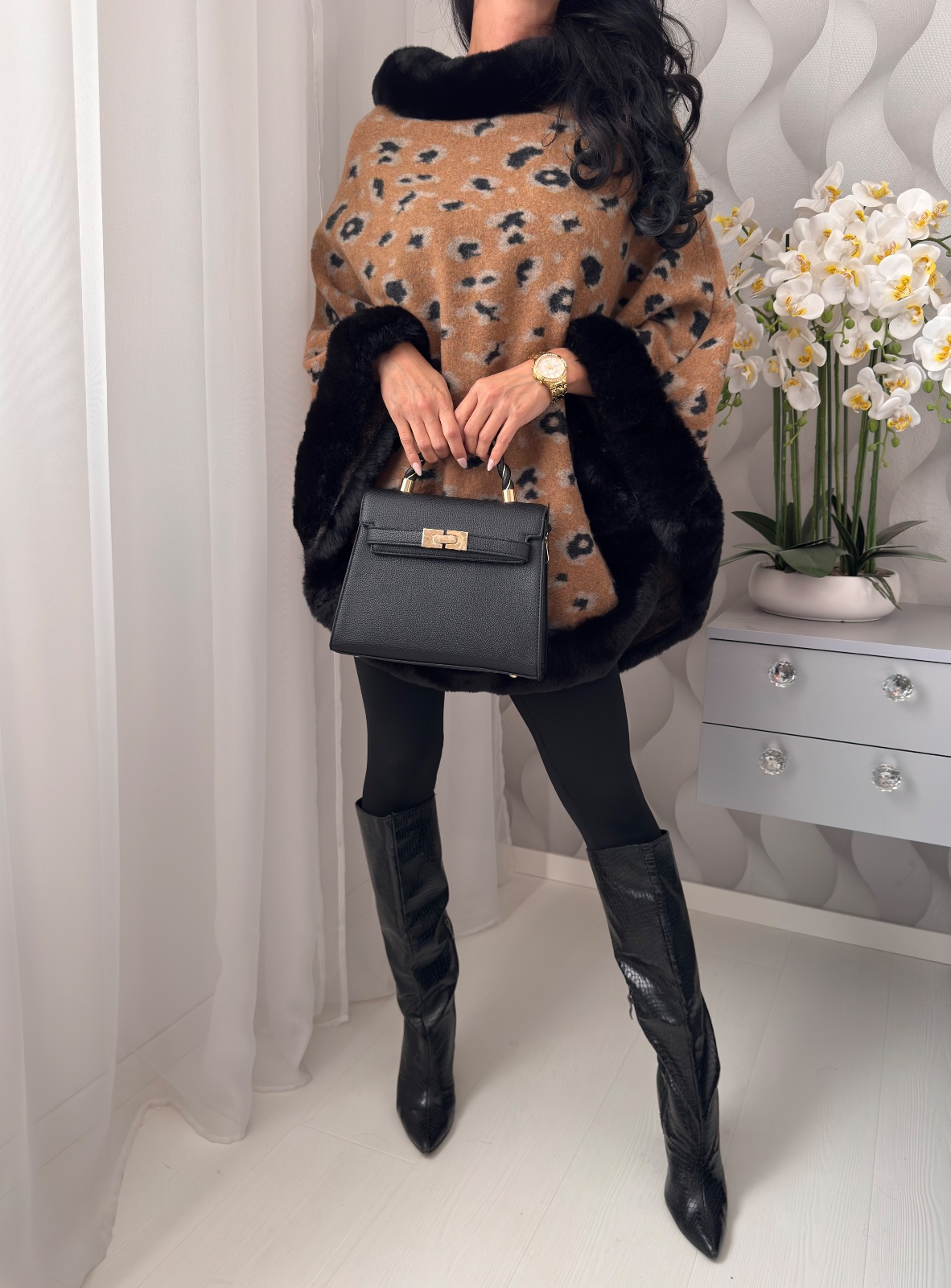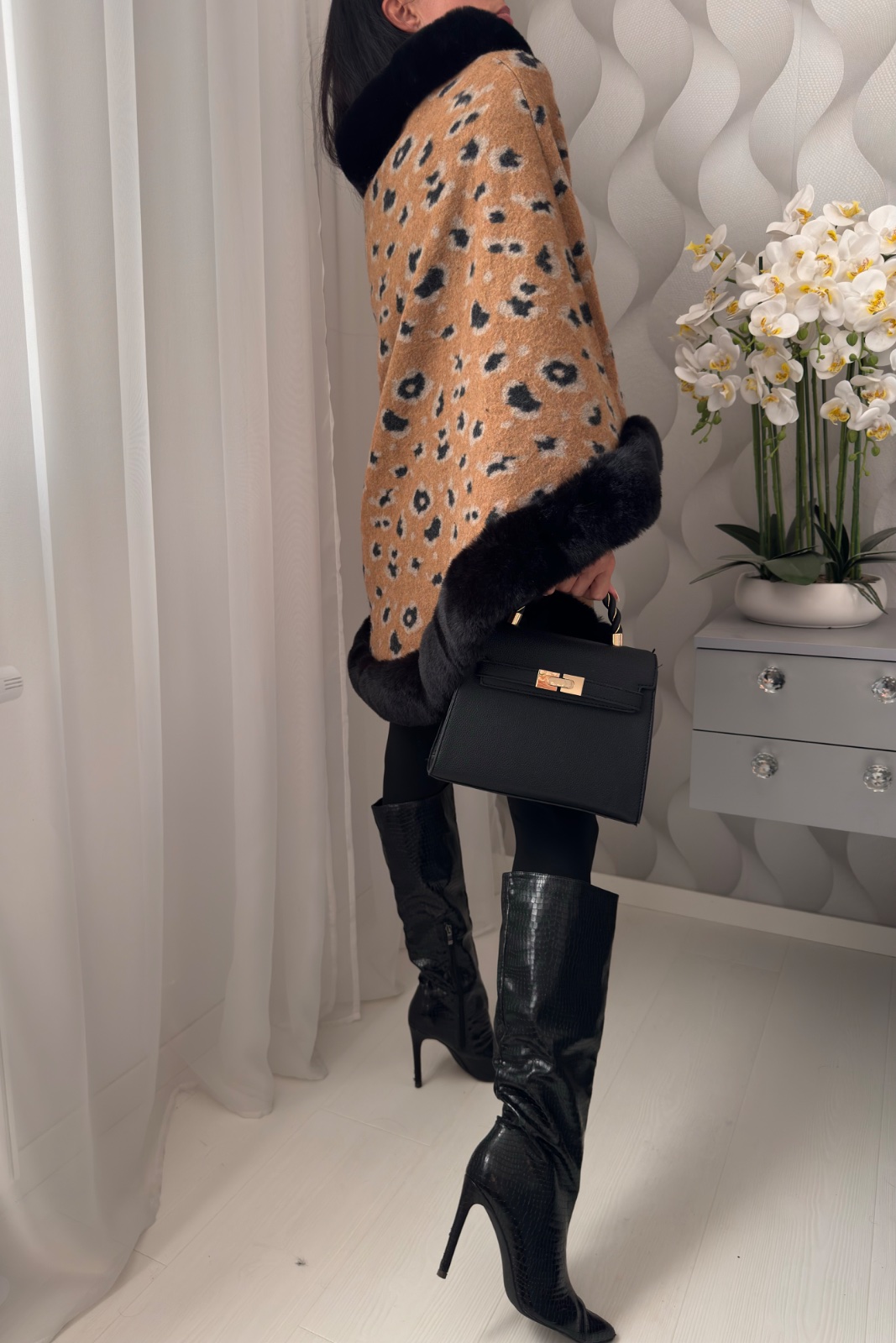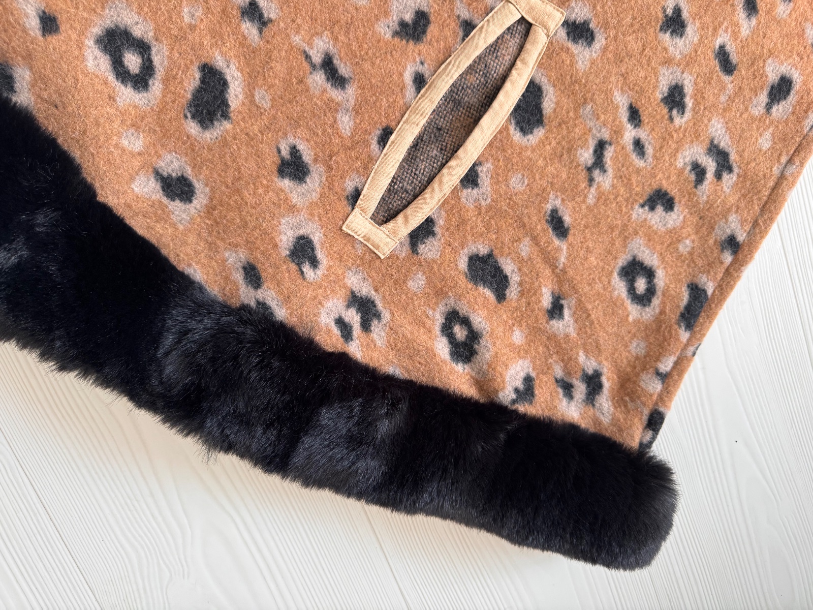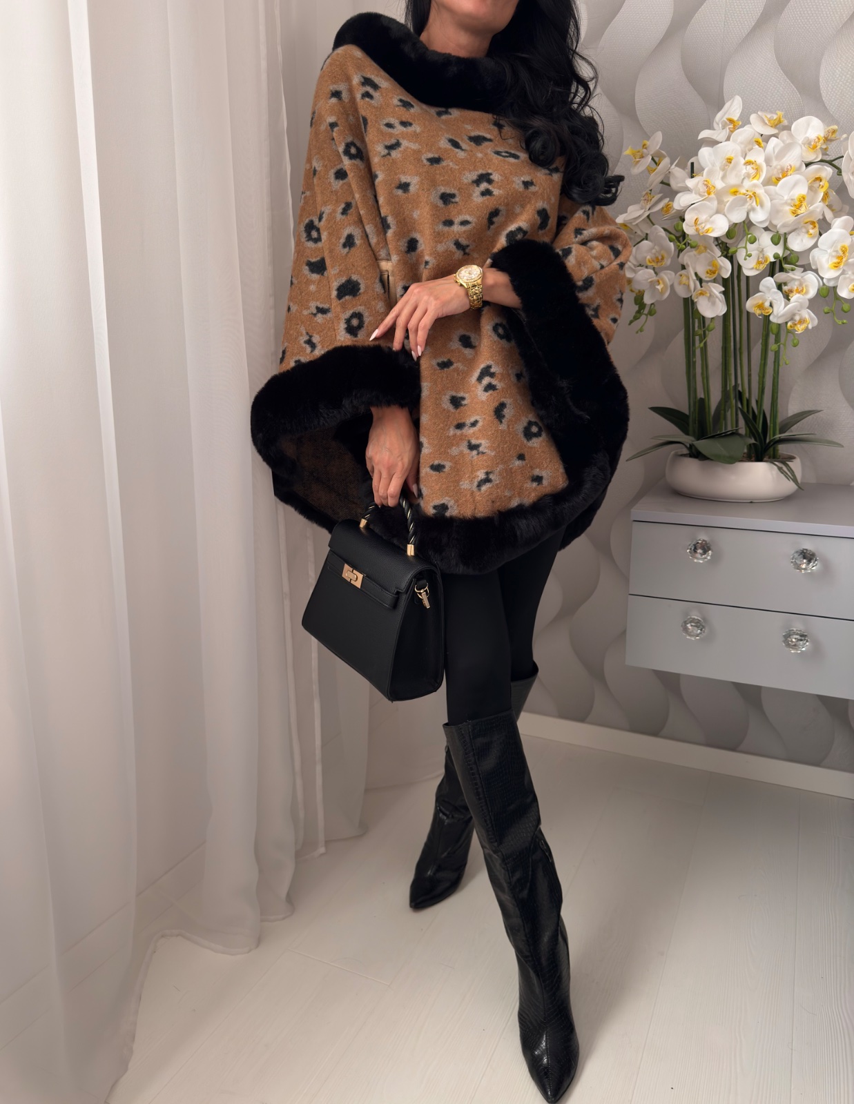 Zaujímavé pončo lemované s čiernou kožušinou.