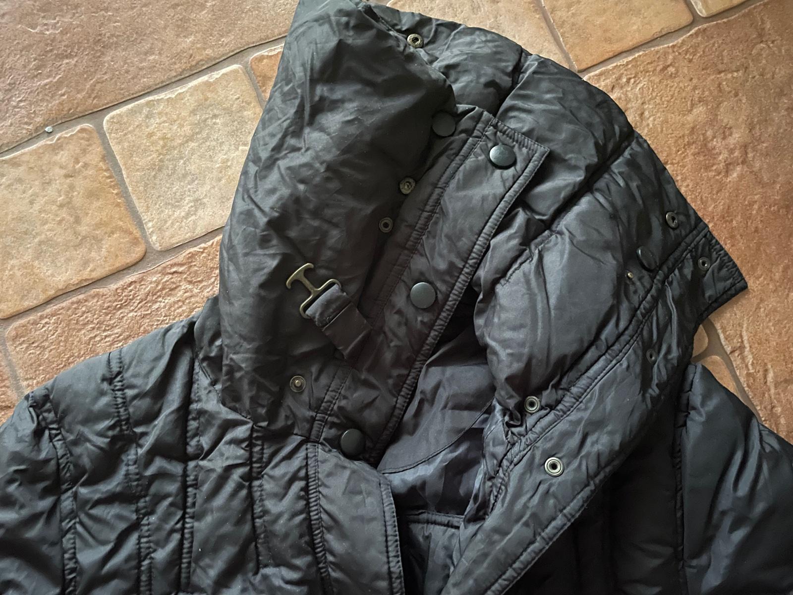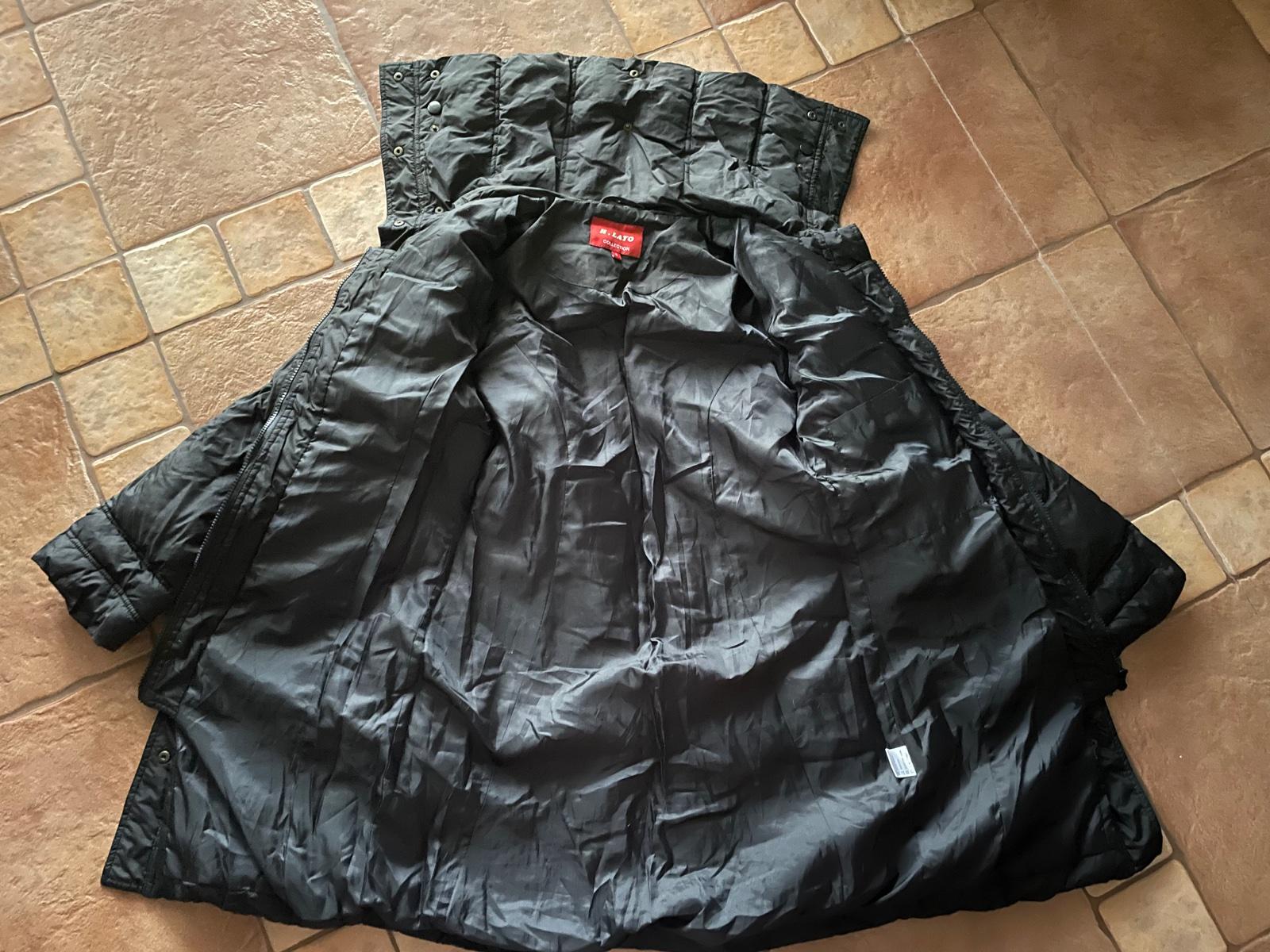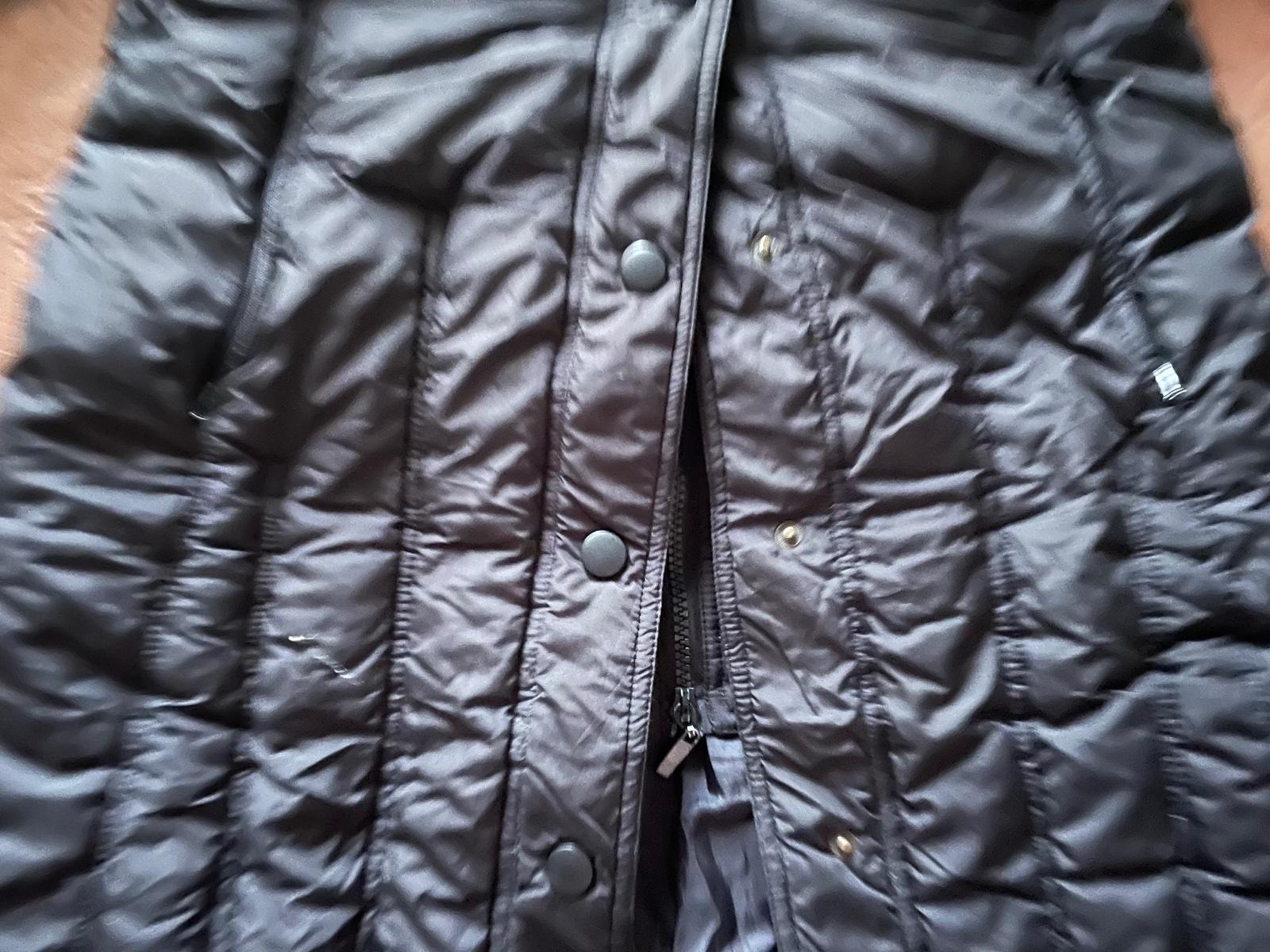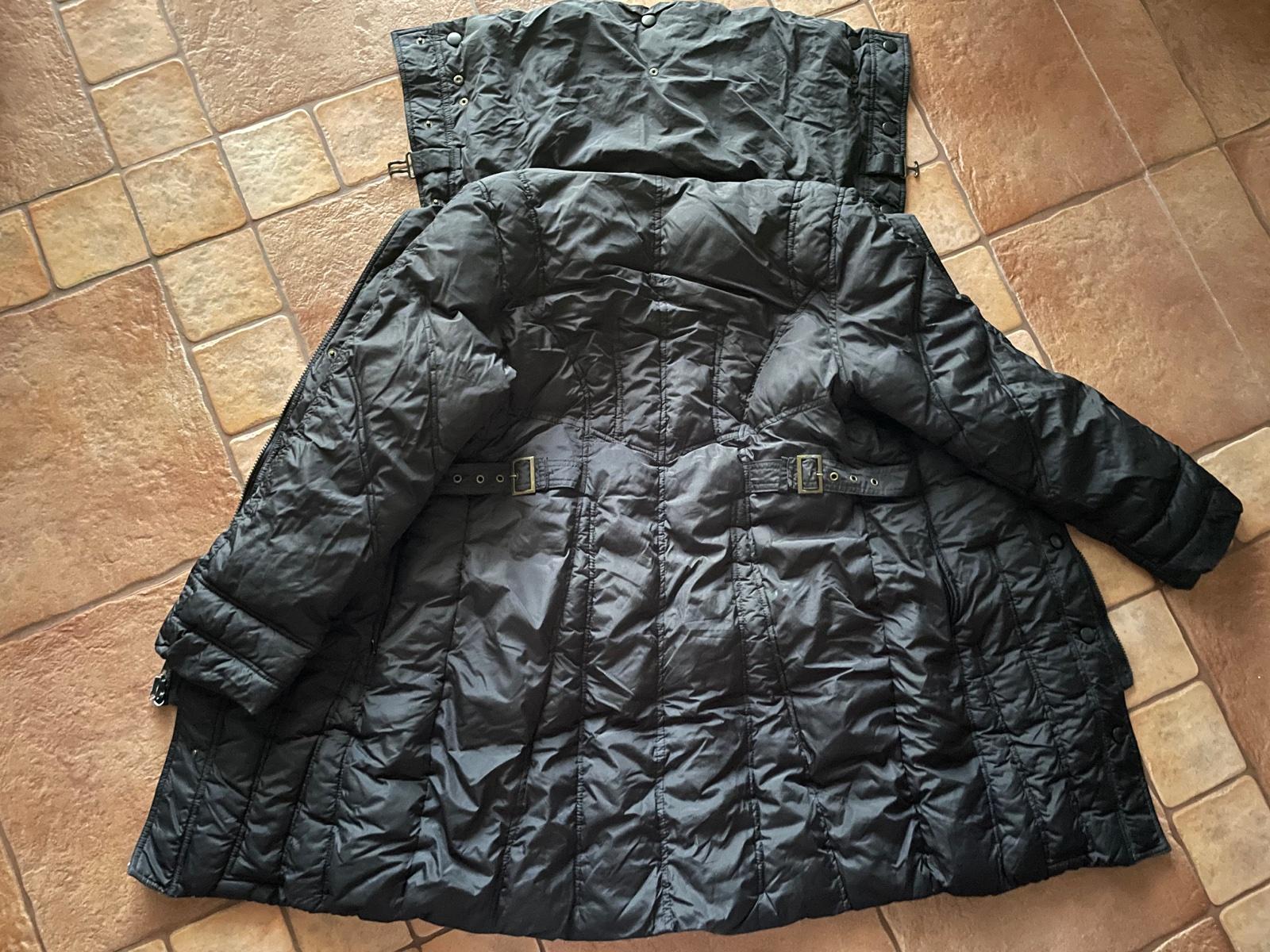 Pekny nosený stav. Zapína sa na zips, cvoky. Ma vyšší golier, nenafúka na krk. Celková dĺžka 83cm, sirka pod pazuchami 2x47cm, rukáv od krku 70cm.