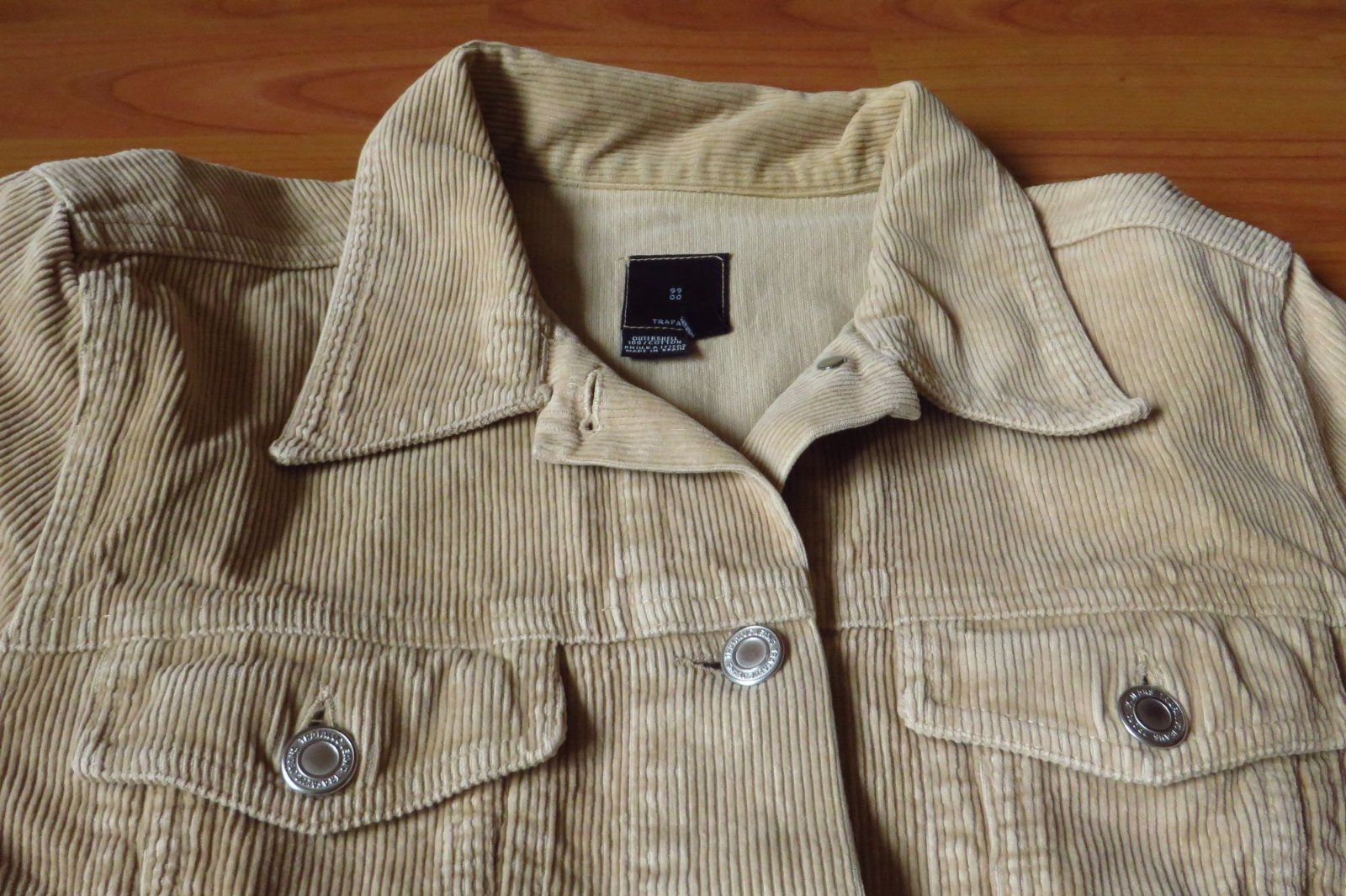 Predám nosenú menčestovú bundu do pása, svetlohnedej farby vo veľkosti M. Celková dĺžka od ramena po spodok je 55 cm, šírka je 47 cm - merala som ju ako končia rukávy, pod pazuchami. Je to 100% bavlna.