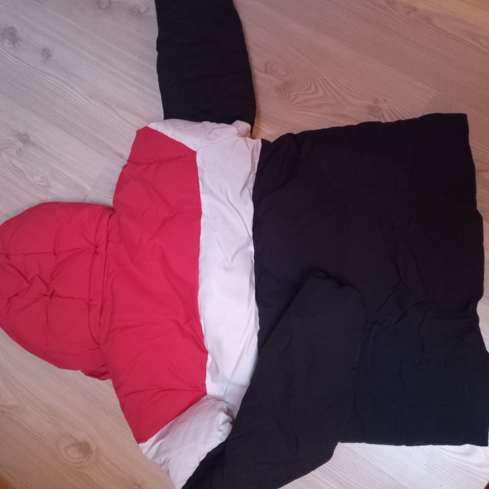 kapucňa na cvoky, š 53 cm, d 66 cm, pri pravom vrecku je zopár minižmolkov, inak nepoškodená