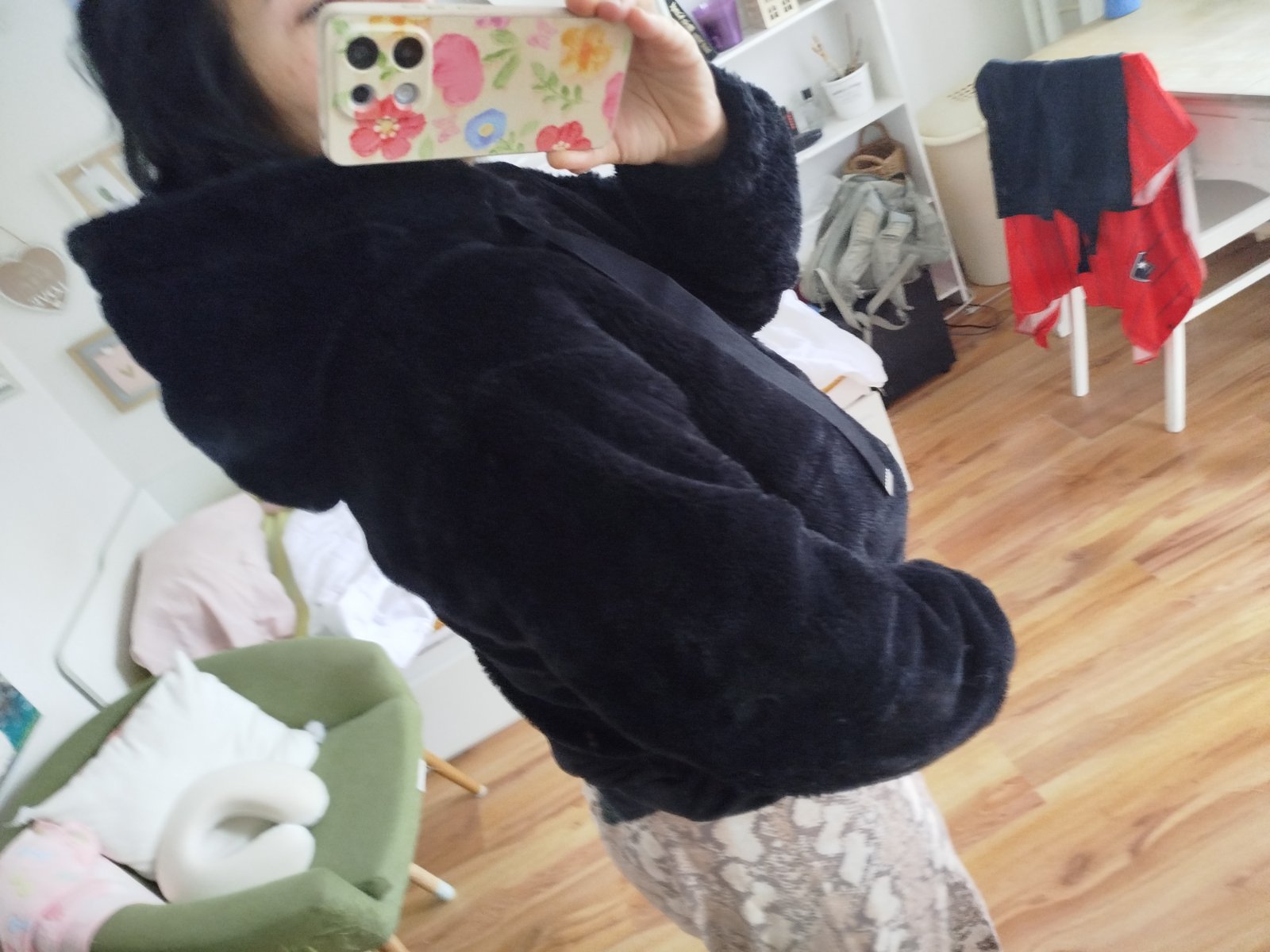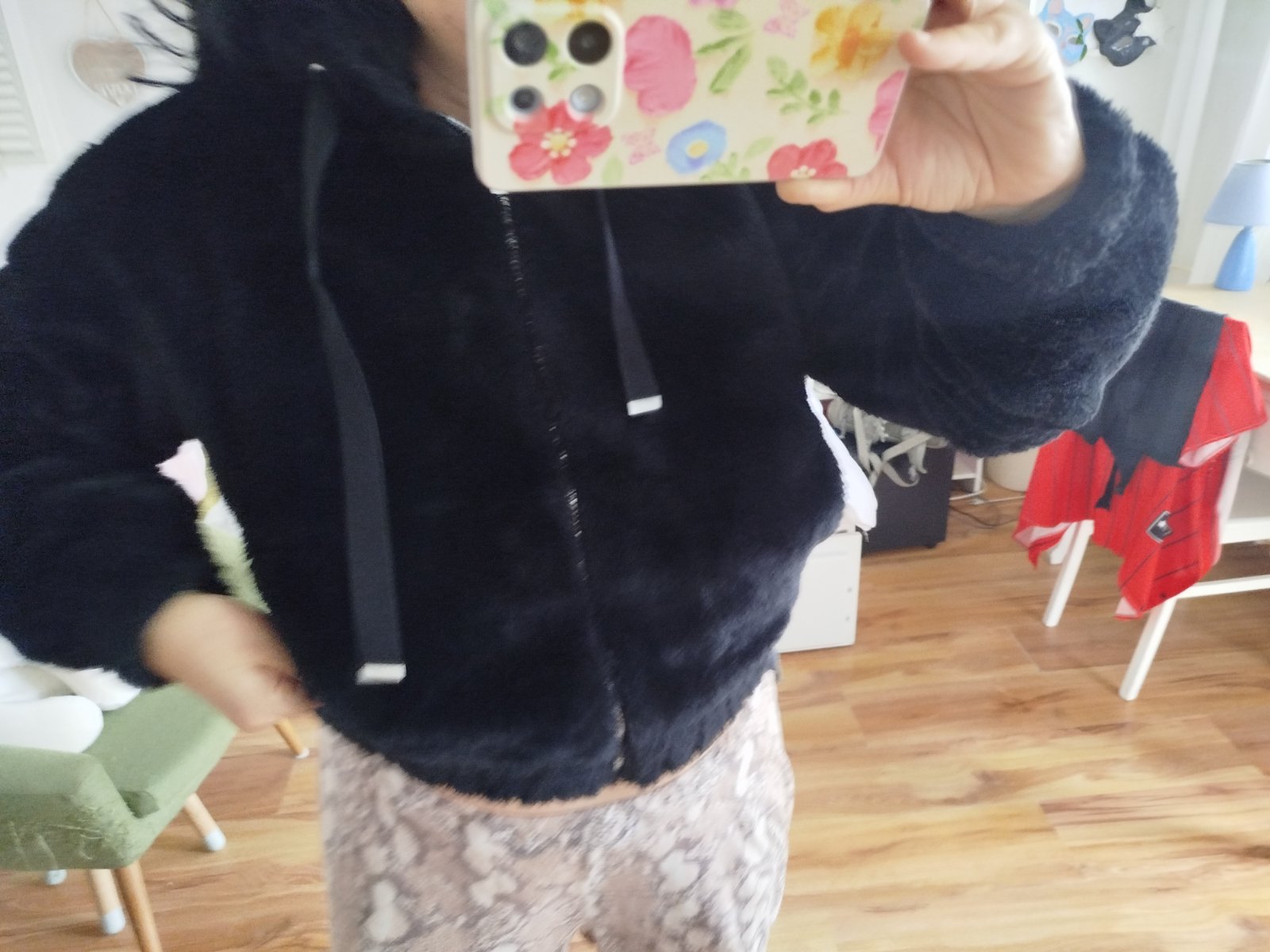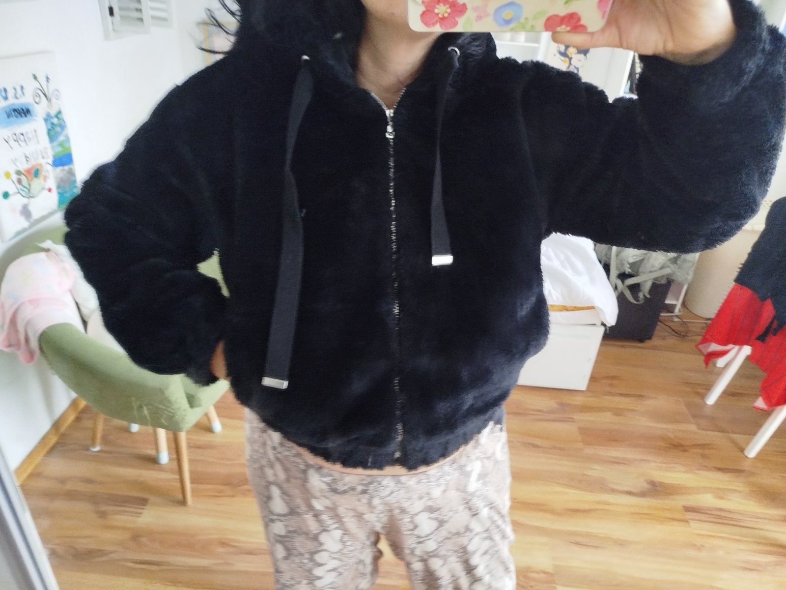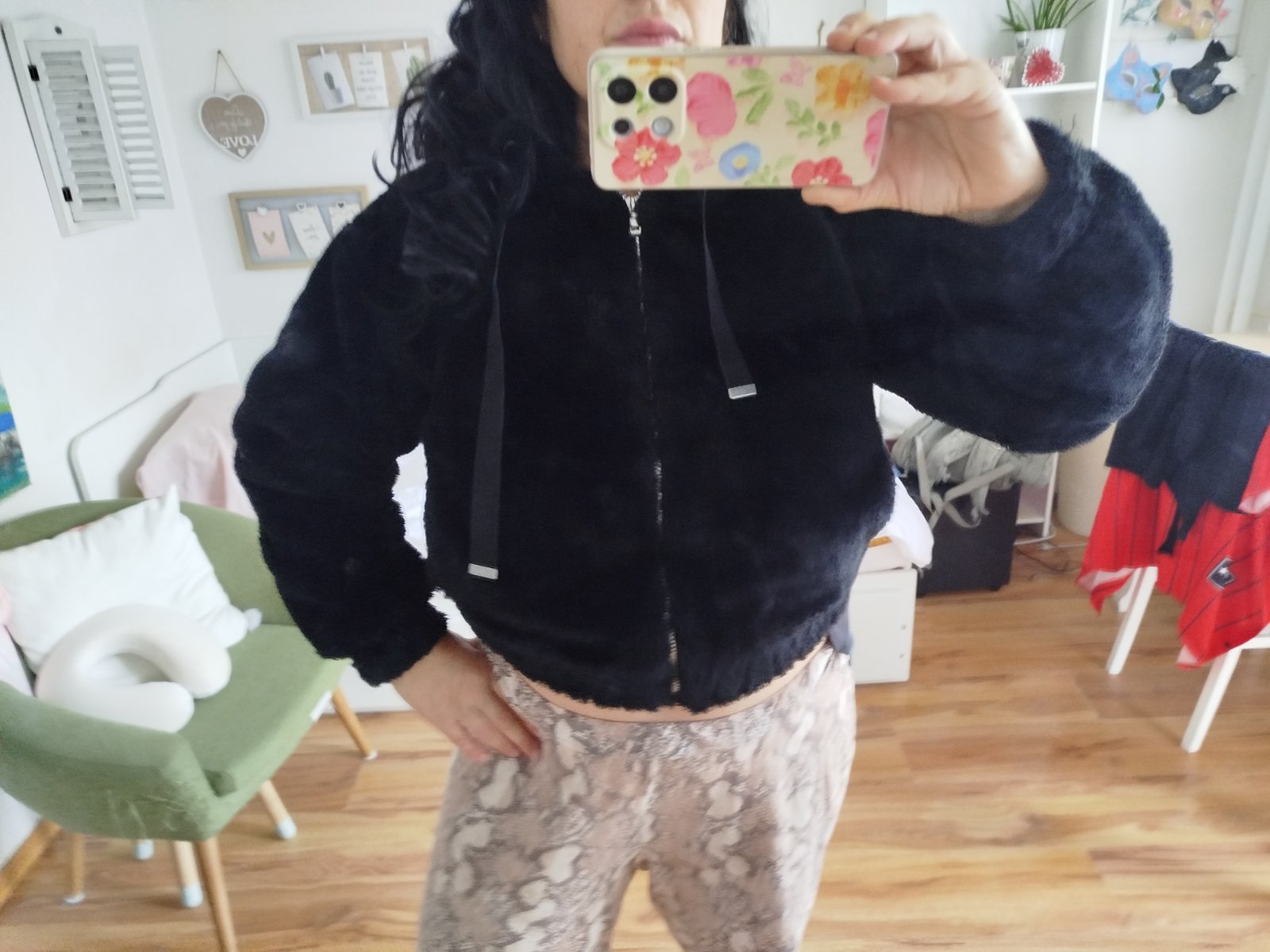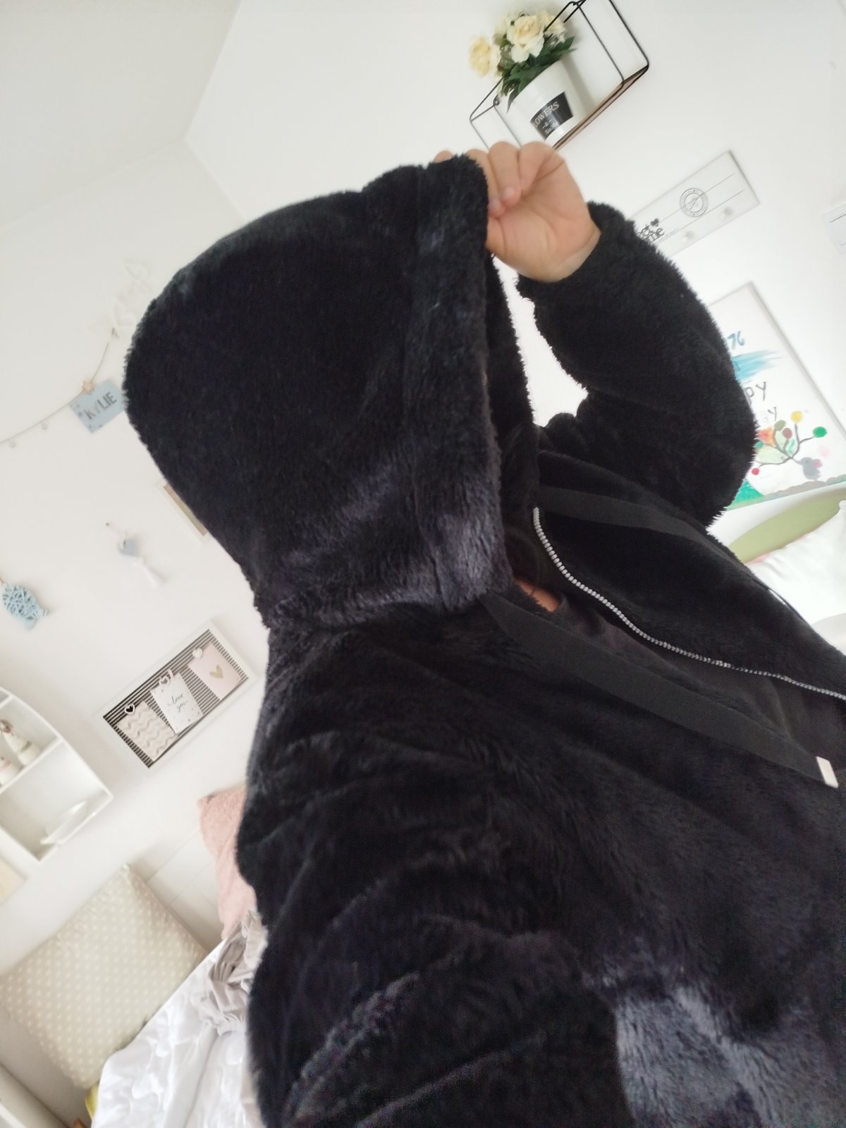 Plyšová bomberka kozusinova príjemná dole ukončená gumou je to taký oversize strih pod pazuchami má.60x 2cm dĺžka 54cm.