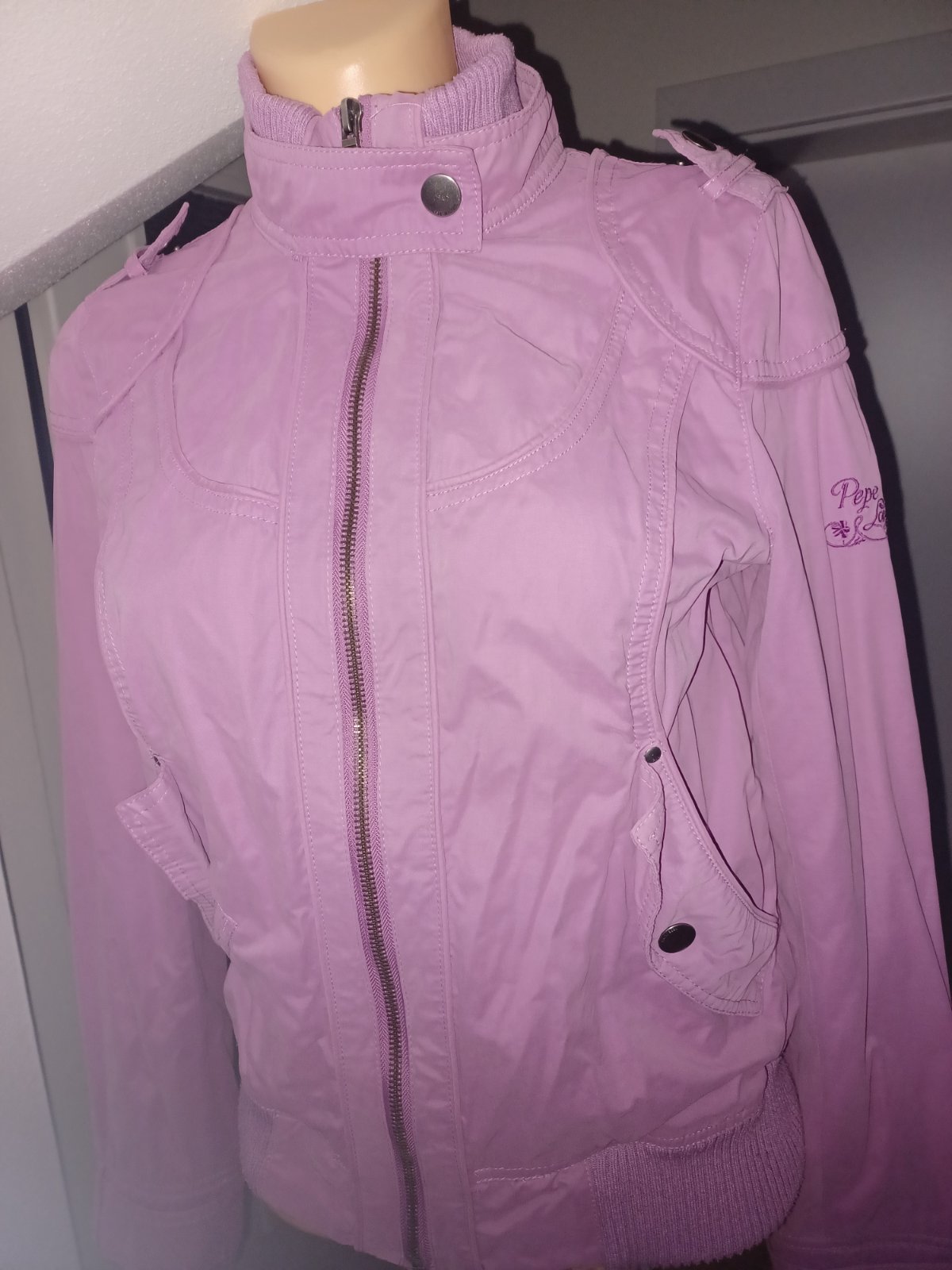 Ponukam na predaj jarnu bundu zn. Pepe Jeans, je nosena, ale zachovala, fialovej farby, velkost S. Cena 8 eur plus postovne.