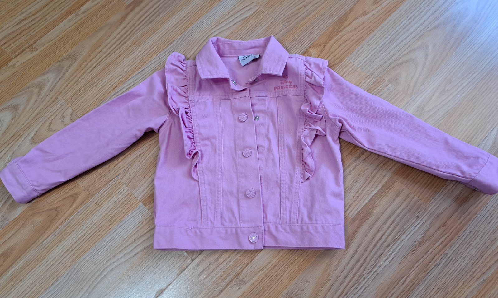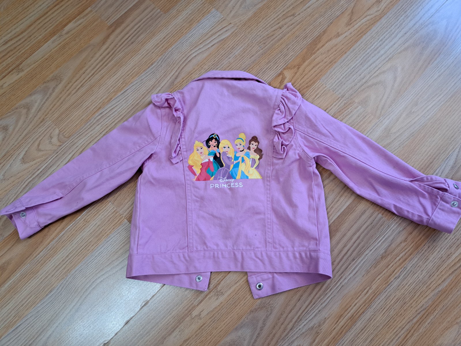Predám rifľovú bundičku Disney Princess ružovej farby vo veľkosti 104. Bundička bola iba raz oblečená. Je ako nová, bez akéhokoľvek poškodenia. Posielam aj na dobierku.