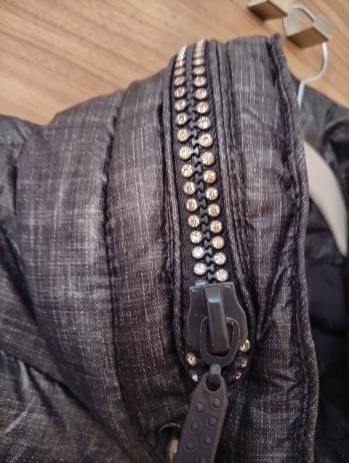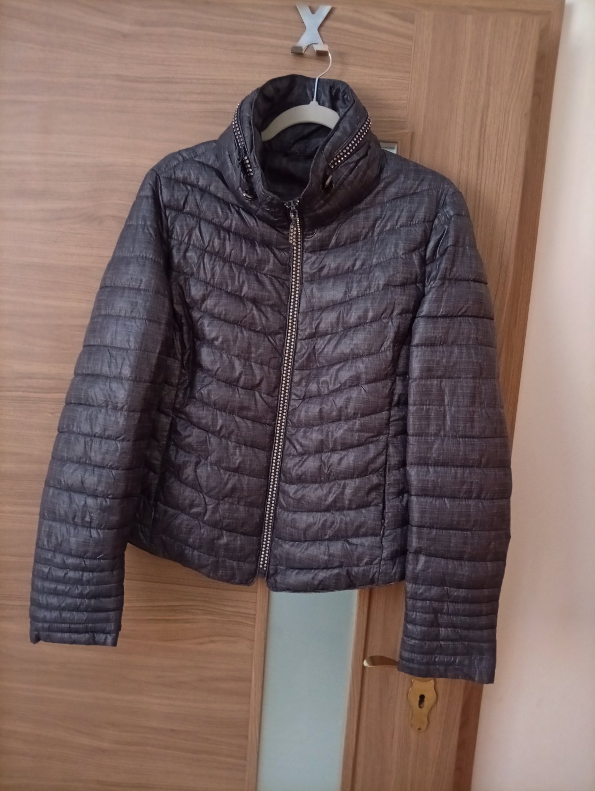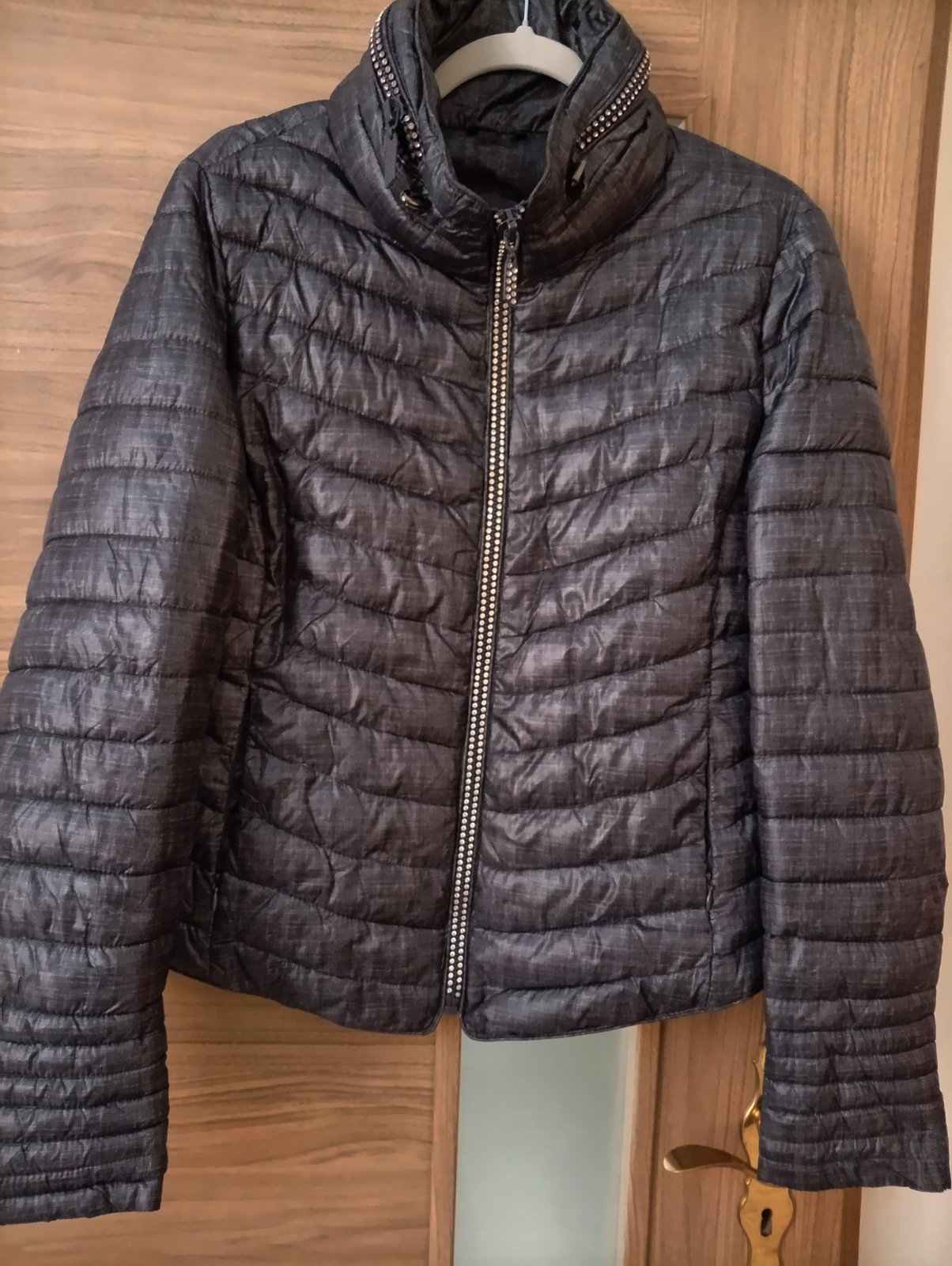 Predám prechodnú bundičku ,okolo zipsu sú strieborné kamienky aj okolo goliera ,ktorý má aj tensiu kapucňu,bundička je slimkoveho strihu veľmi pekne ukáže na postave