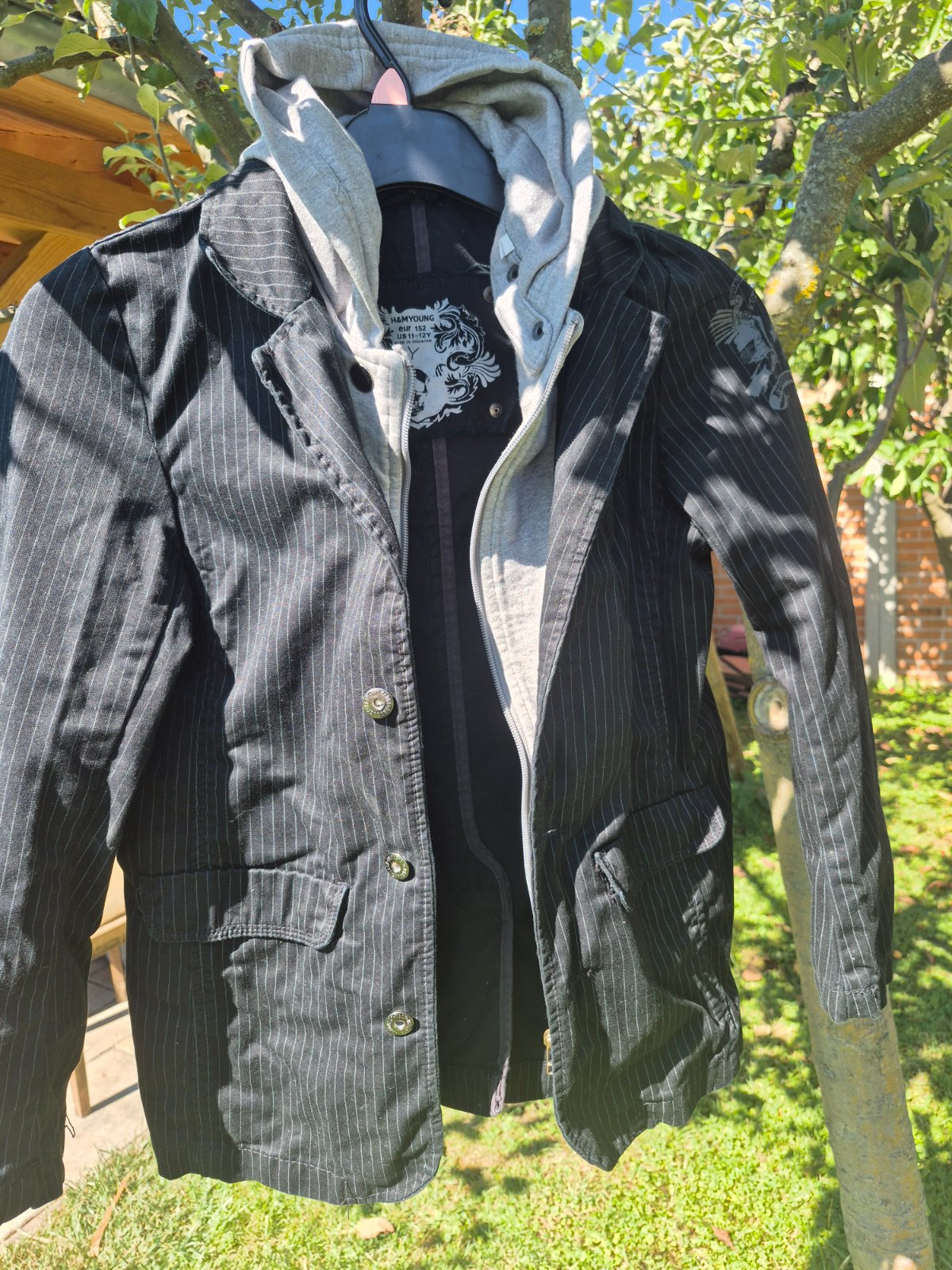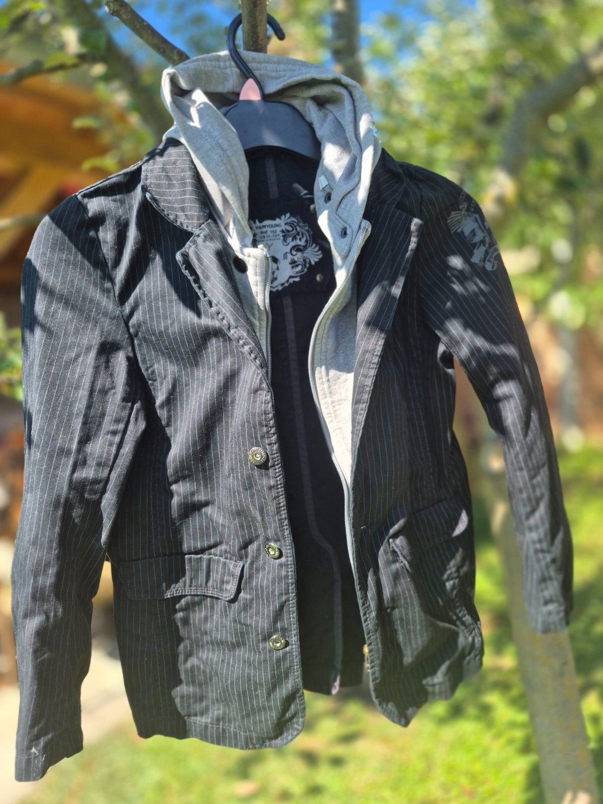 Pi synovi...raz oblečená,nestihli sme vynosiť...kapuca sa dá dať dole...viete nosiť ako samostatné sako