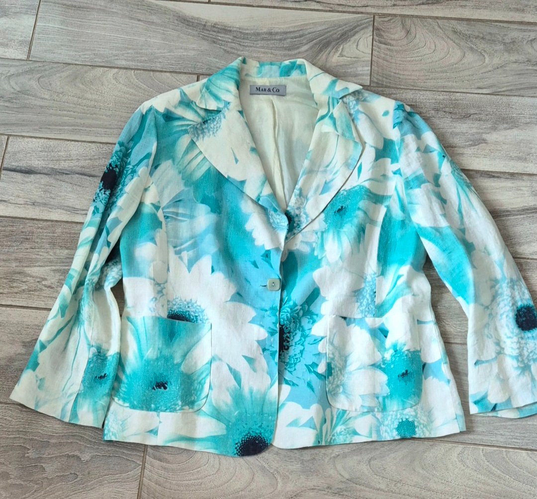 Krásne sako v top stave. Je bez zapínania a má nariadené rukávy. Veľkosť - L/42