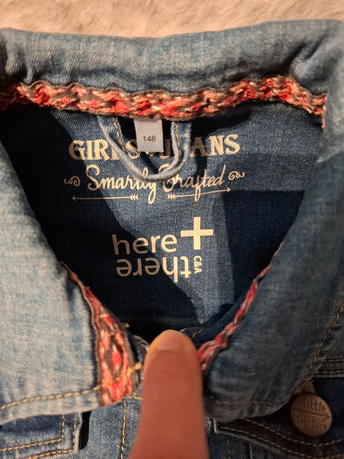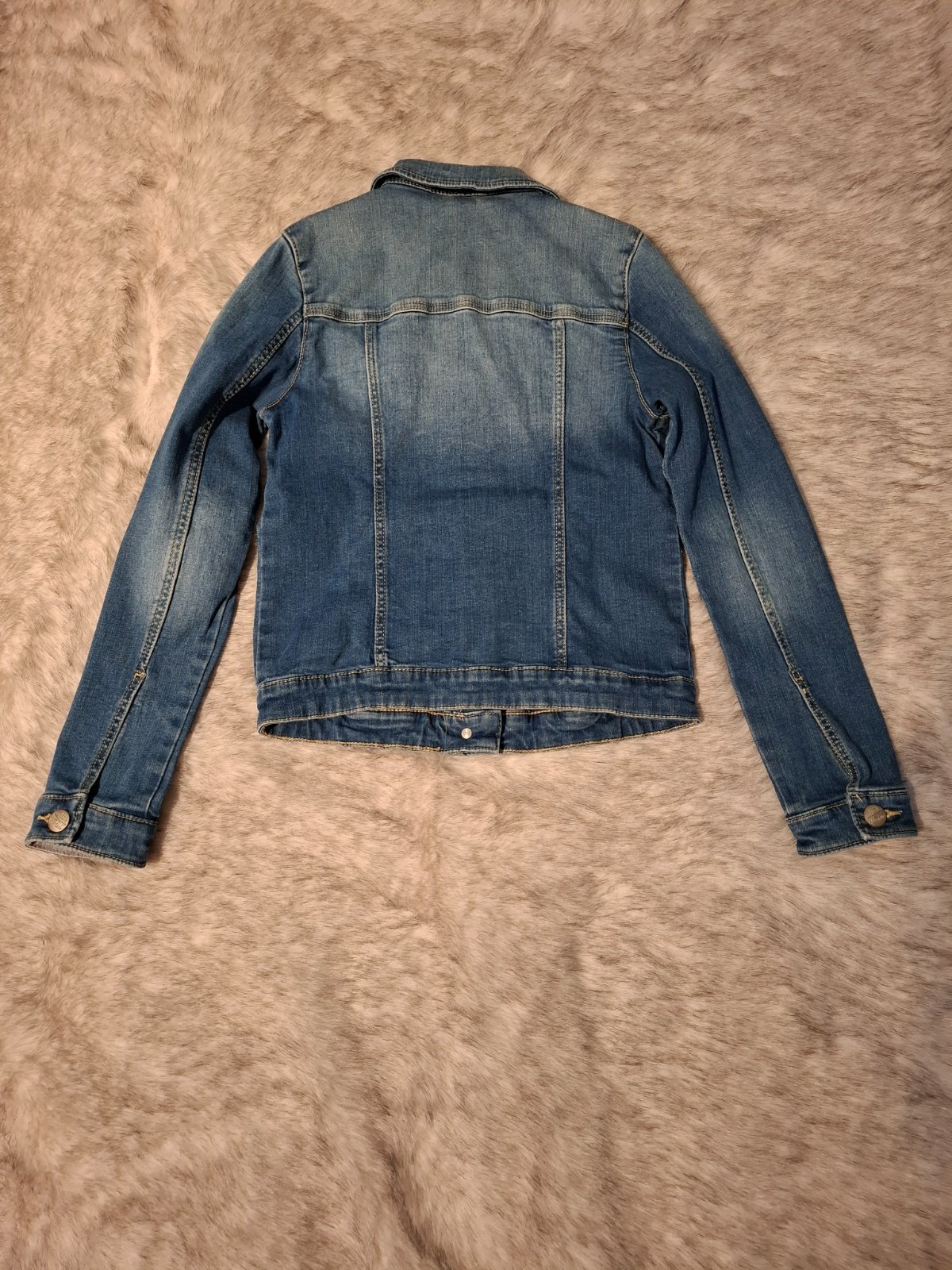 Krásna bunda ,zn.C&A ...vel.146/152. Tenšia ,poddajná riflovina. Realna farba je dobre vidieť na poslednej fotke . Pekný strih. Super stav.