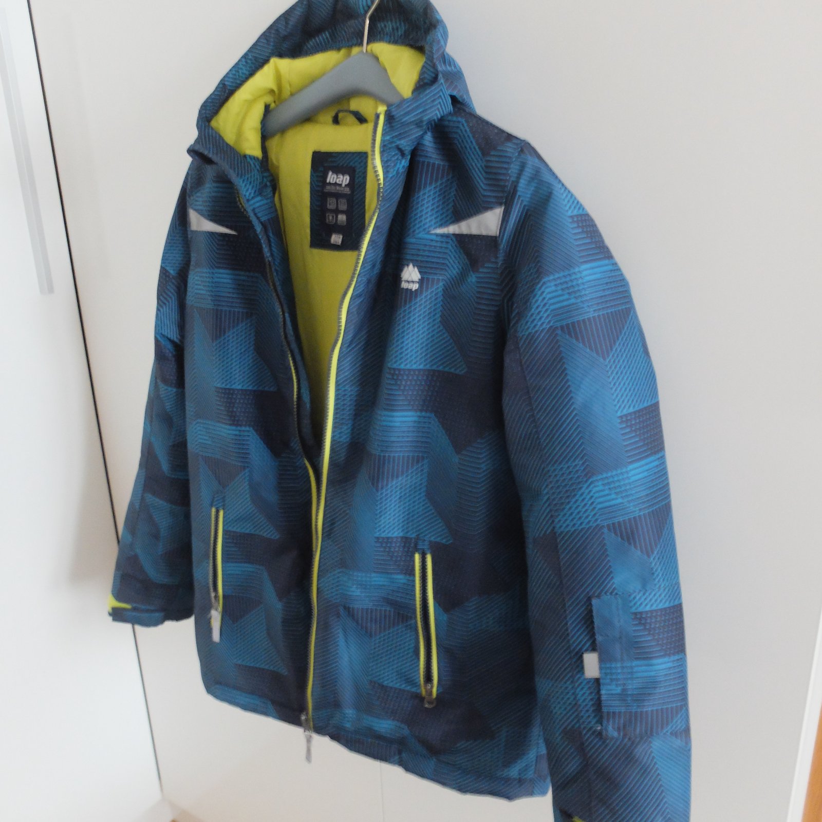 Chlapčenská lyžiarska bunda č. 158/164 zn. Loap, snežný pás, vnútorné patenty na ruky, vrecko na rukáve na permanentku, gumičky na rukávoch na rukavice, reflexné prvky, kapucňa napevno. Na rukávoch...
